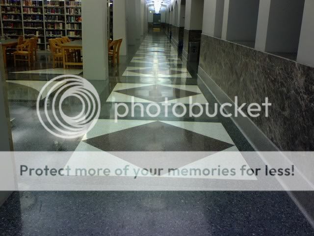 The interior of the Harold Washington Library was decorated with cunningly subtle gray paint, gray tile, with an occasional application of gray to break the monotony. For example: