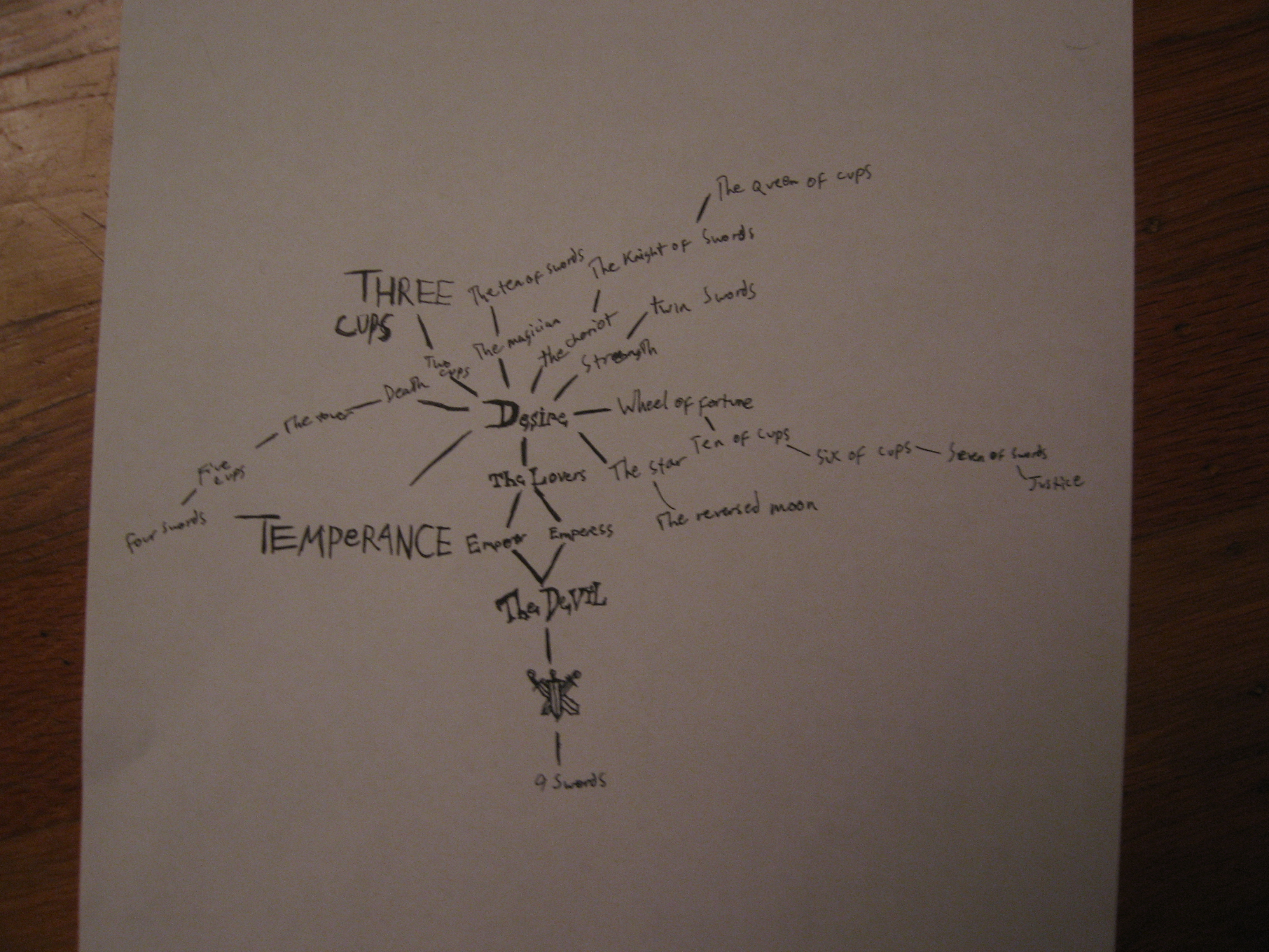 Ok, if you are wondering what the connections mean, they are what follows another of the cards in chronological experience.