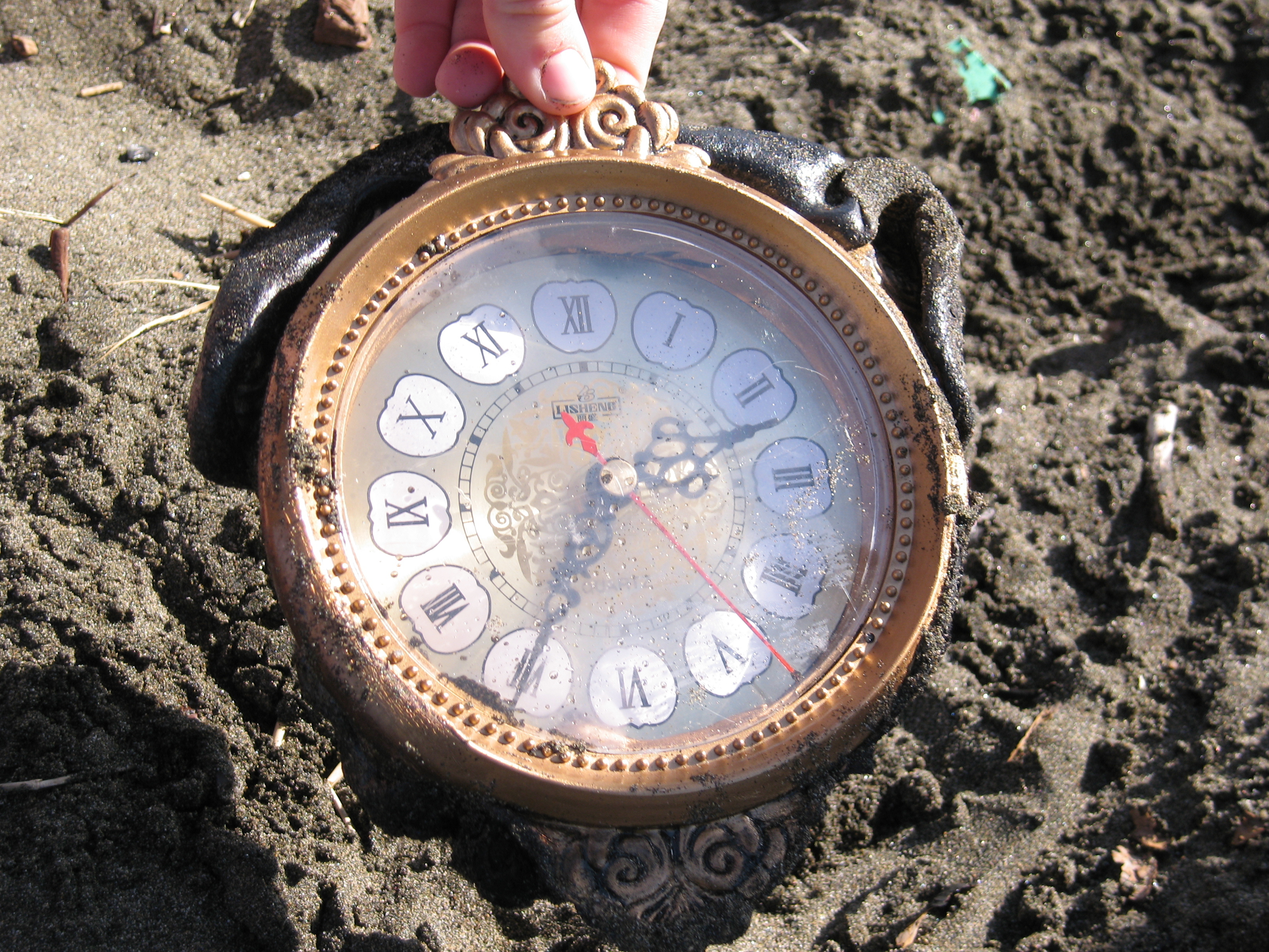 We placed our clock in a hole in the ground, which we then secured it's base with, so as to stop it from blowing over in the wind.