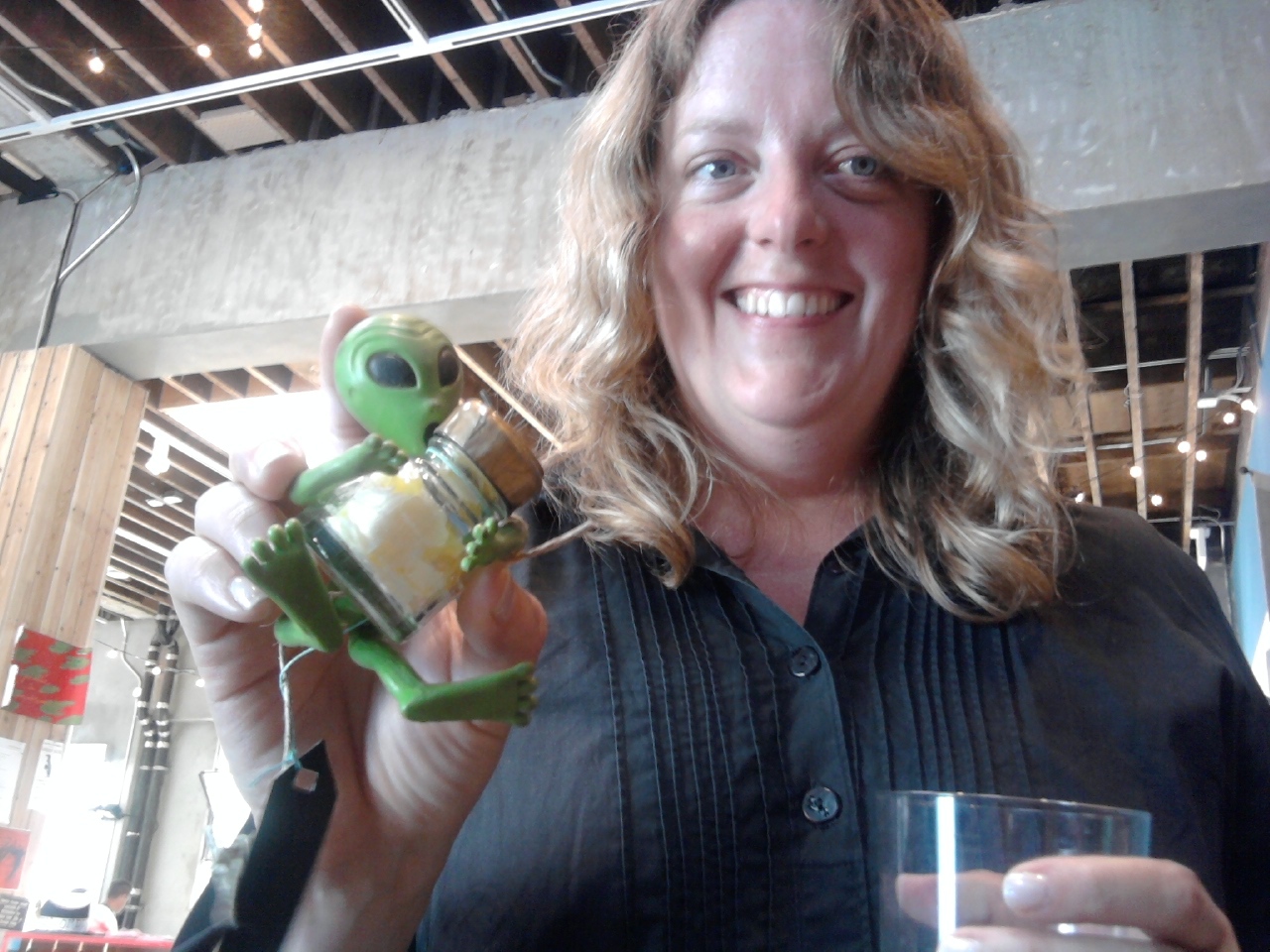 The wonderful artist Alison Smith with her Alien Buddy and Light particles from the first minutes of our sun's existence. Other artifacts we don't have pictures of: Dinosaur babies, Houdini's Handcuffs, Oscar Wilde's switchblade comb, Calamity Jane's horseshoe, Napoleon (Or was it Voltaire?)'s Coffee Cup, Space Labyrinths, The first commercially available telephone.