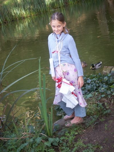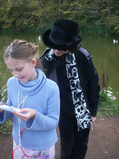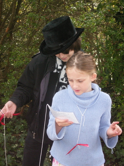 It was fun. Mostly because my sister Evie kept doing the most ridicules things. (quite funny. The stuff that she did with wearing the story bits was...very amusing. ) The actual method of story delivery was interesting, butdefiately needed tweaking to make it work better, mostly because it needed more interactivity (istuff like this would be the most fun if it was done in an A.R.G. like manner and if it could be a "living" story. (i.e. a story that could change while it was being found.)