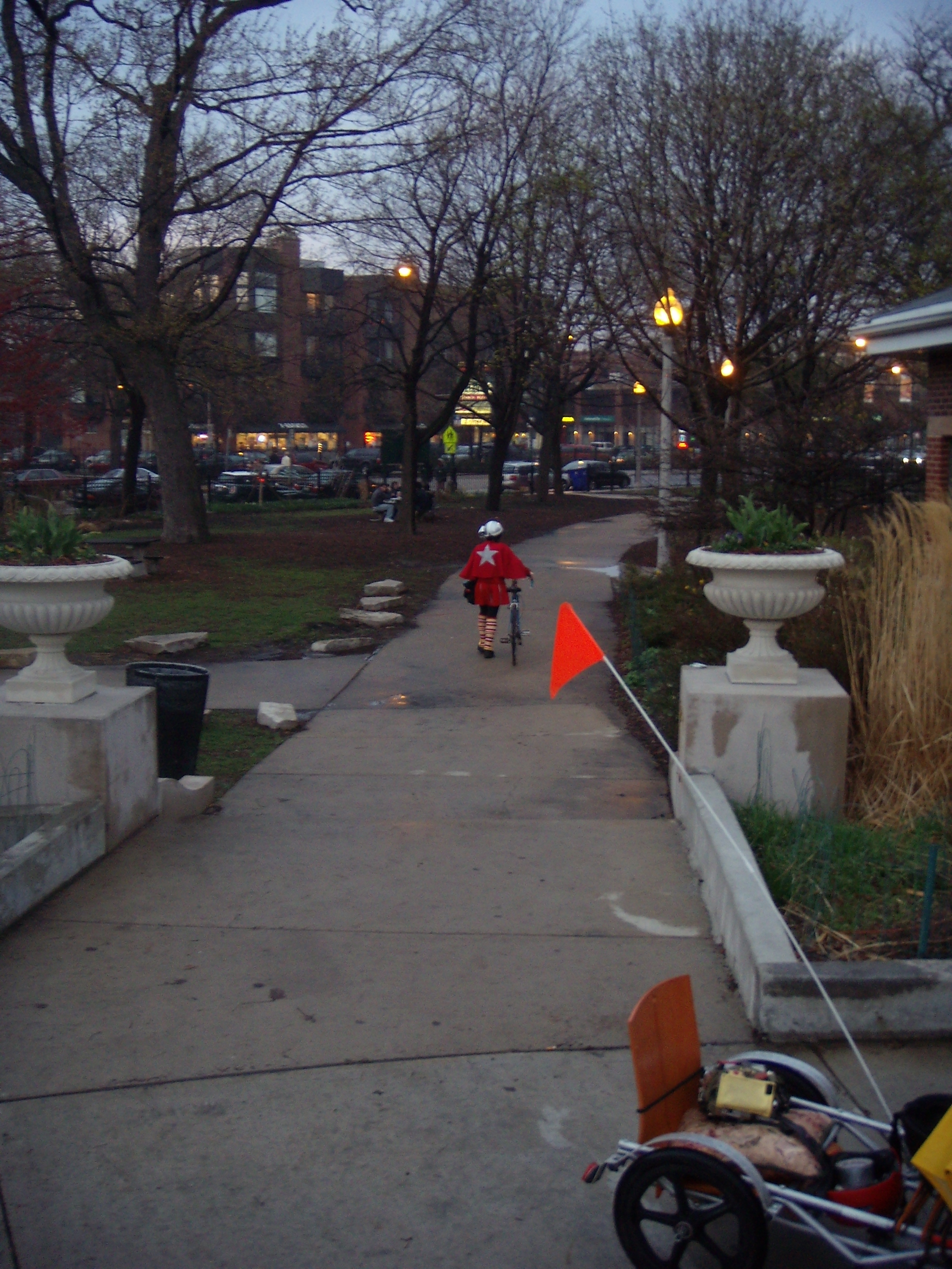 We made it most of the way to the first checkpoint without incident. Which didn't mean we were calm - quite the opposite. Every bike, every pedestrian, was a potential chaser. The adrenaline started pumping early, making us extremely jumpy. More than once Shea jumped almost straight up at some bit of movement that only he could see. But we didn't actually enccounter any until we reached a set of traintracks that we had to go under. Suddenly, Shea spotted the bike chaser!