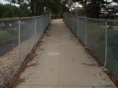 This might look like a sidewalk, but it ain't. This is the path to a bridge over the the interstate. It's not a sidewalk because it isn't beside anything.