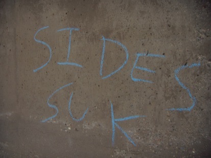 -Refering to the sidewalks by a derogatory slur ("sides")