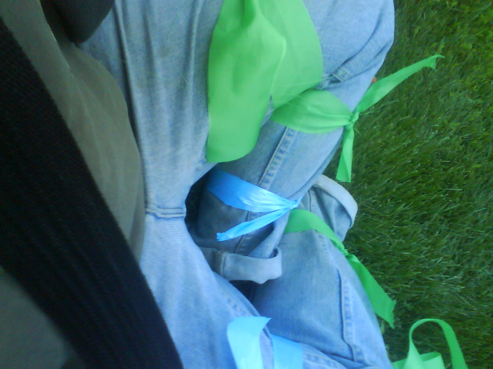 For my checkpoint, I was The Runner. I dressed in green and blue ribbons all over my legs and arms, plus some through the button holes of my jacket, more around my bag, and my old Chicago runner ribbon tied around my head. I also added a few of the extra life ribbons from the first Journey, for extra ribbon action. I also had a clipboard (with some more ribbons on it) and a big pile of manifests from previous Journeys. When I saw a runner, I’d run straight towards them (despite being in a safe zone, half of the time people would start running away) and I’d start yelling “I NEED YOU TO SIGN MY MANIFEST!!” Once they signed my manifest, I would sign theirs and run away.