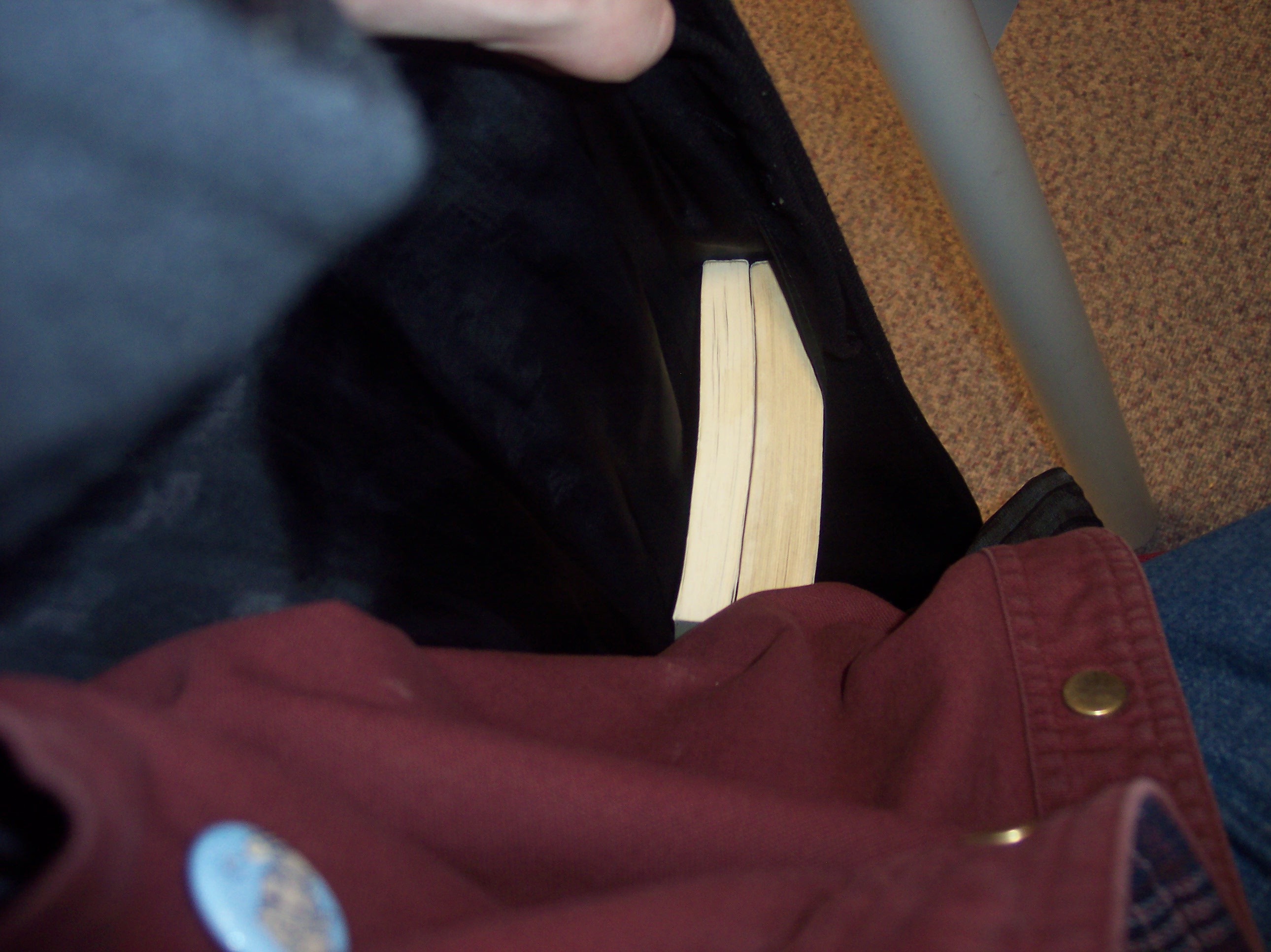 I put the books in my coat pocket, making them easier to slip out than if I had put them in my bag