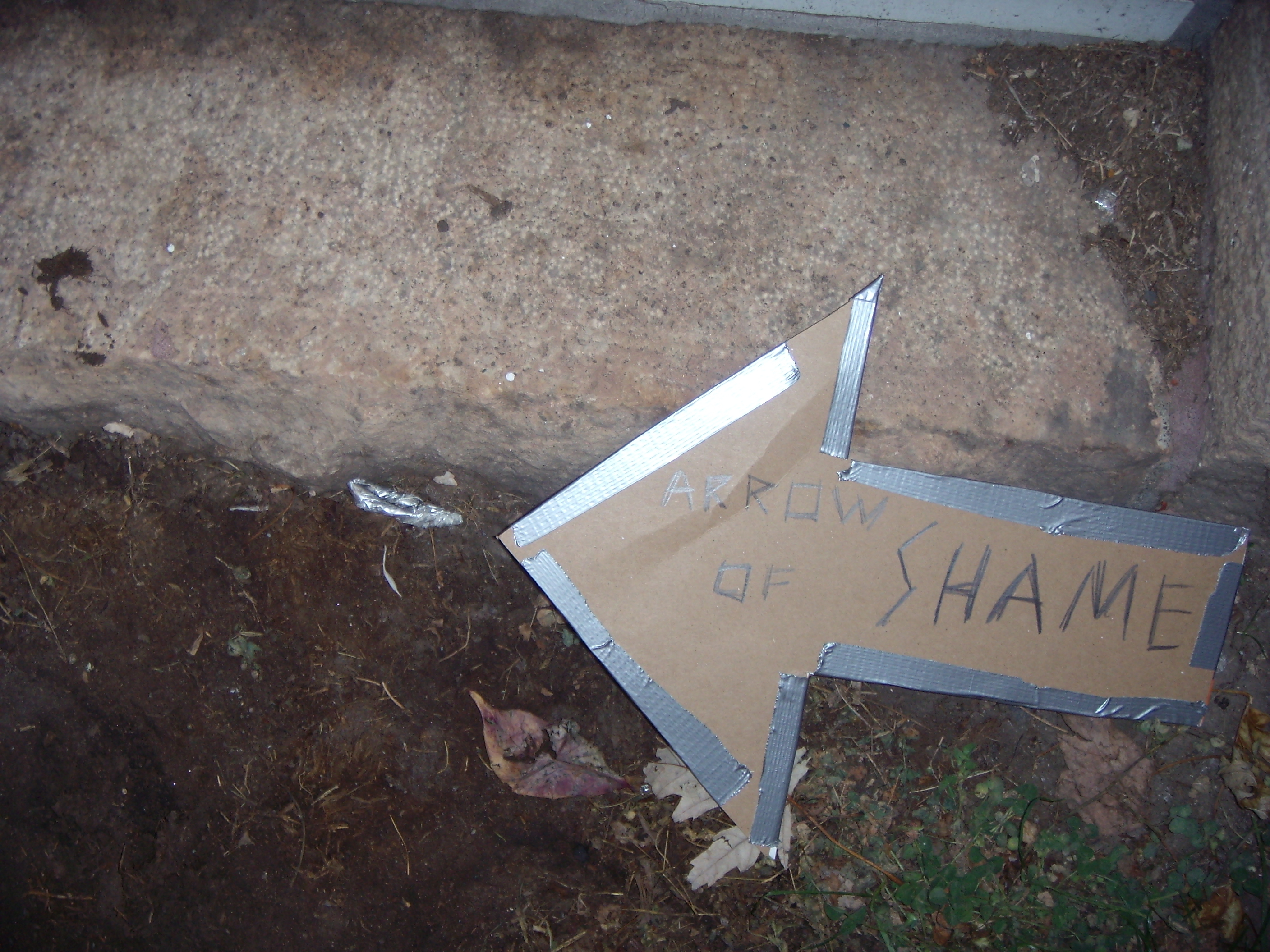 ...but if you took the arrow with you after taking the picture, how will those whose shame you've tried to call attention to ever know?