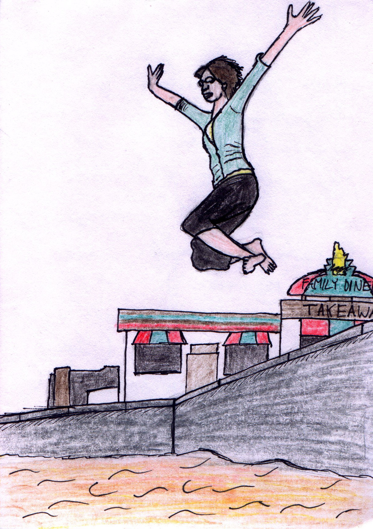 This one went well at first. Surprisingly, the hands weren't too bad, but when I came to drawing the headphones she's wearing, I just ended up with a random black blob up one side of the face.