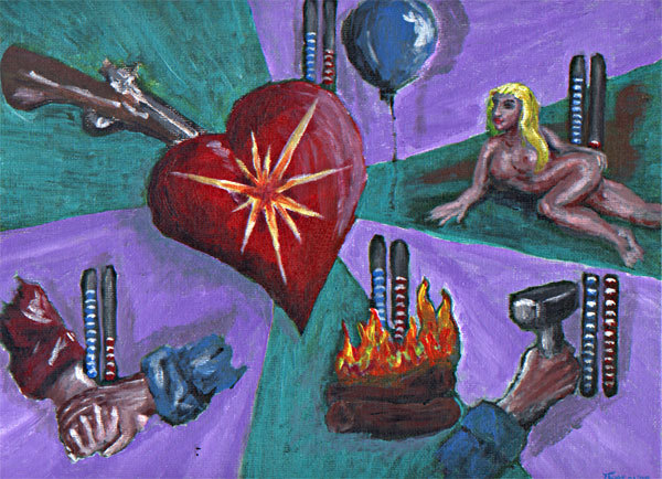 The whole of the graph shows, at center, the heart exploding with desire from a shotgun blast. This is the way I see desire beginning in all of us, a violent, explosive palpitation of the heart that shoots outward to our various circles of concern.