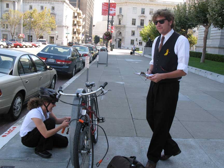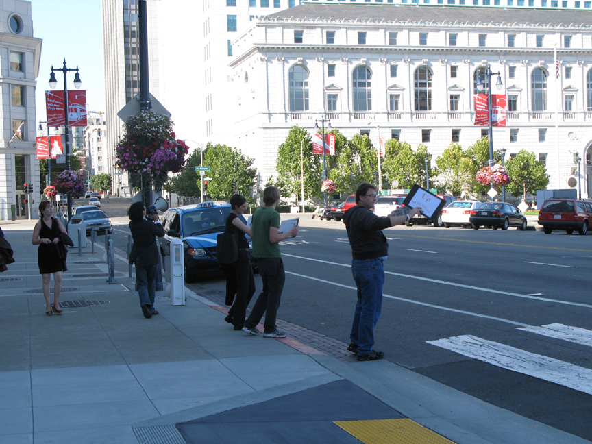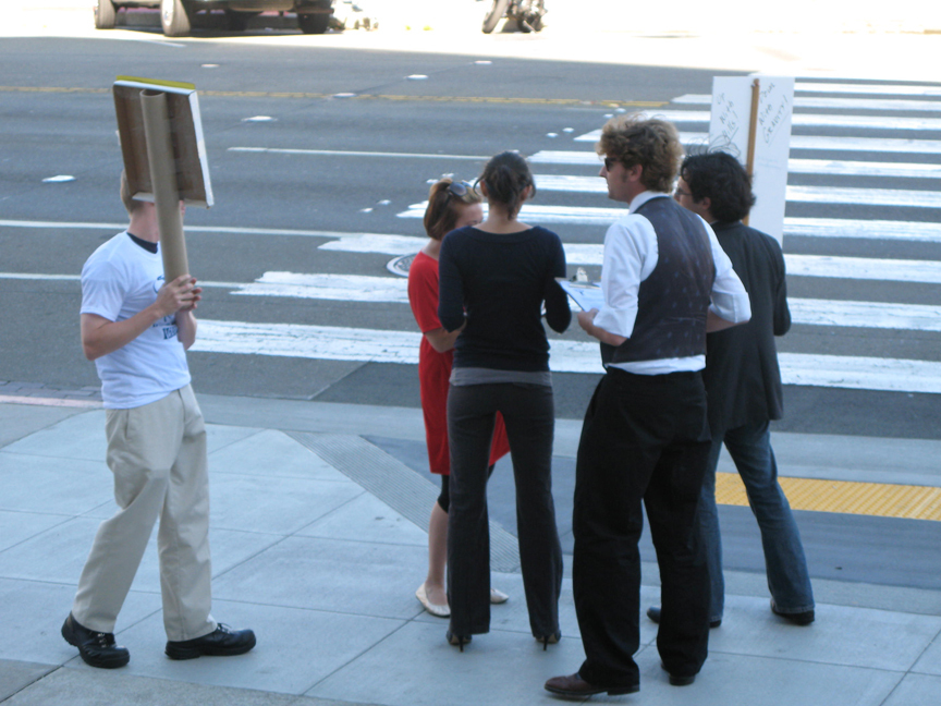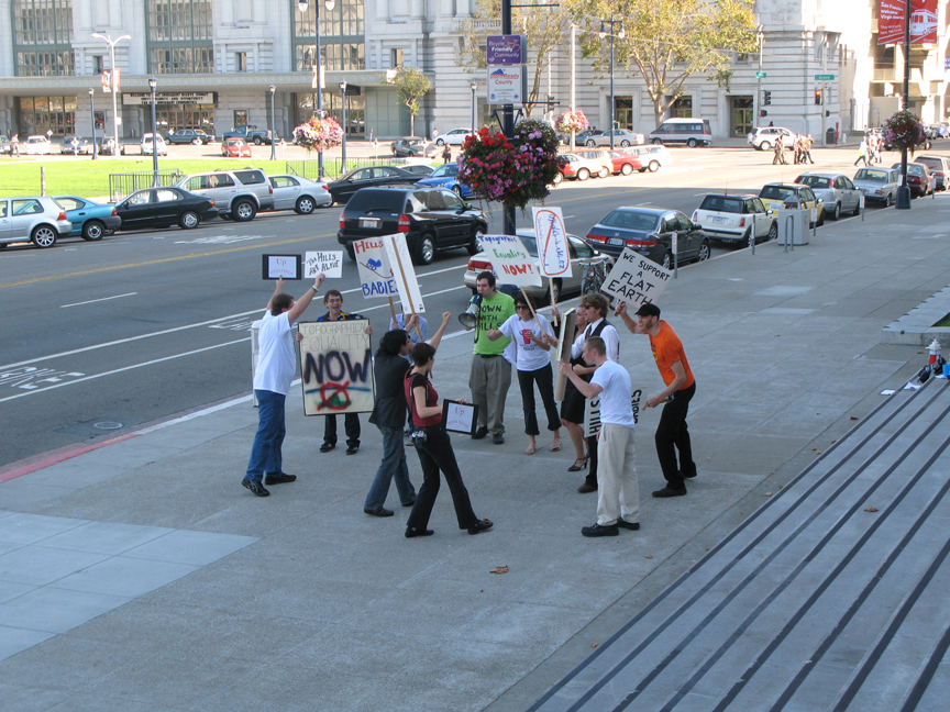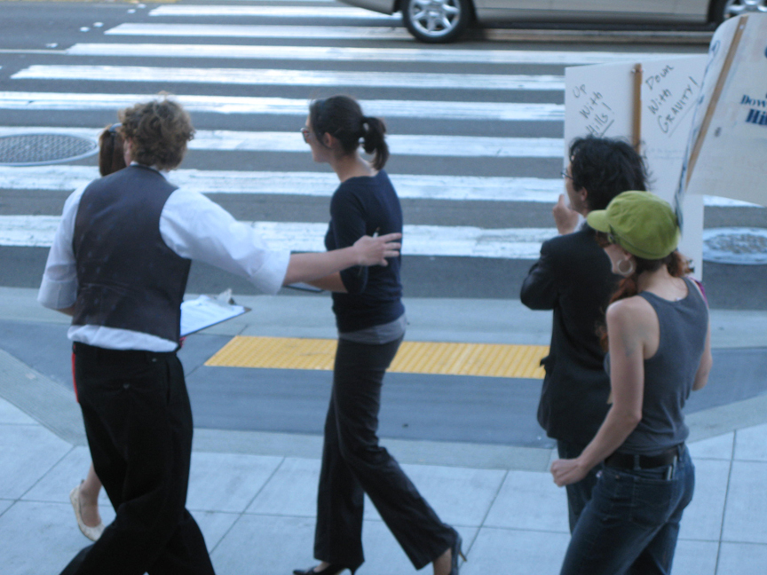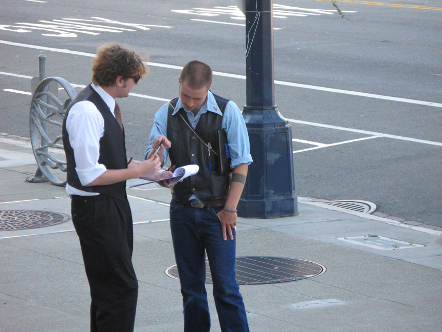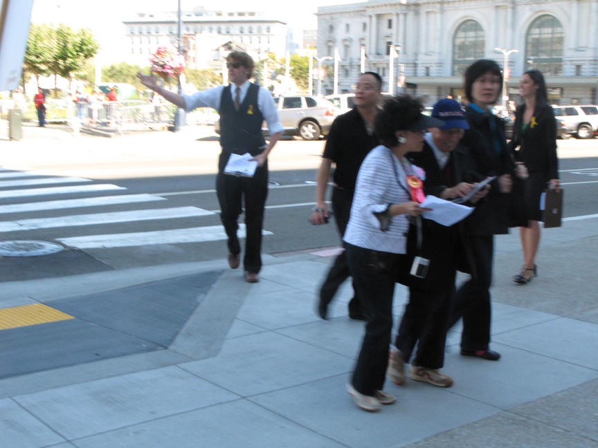 "Excuse me sir, do you support equality in San Francisco?" She did linguistic acrobatics, spouting phrases like "equal footing" and "vertical stratification" and "the overclass." Our first signature. The Downocrats ended up filling our lists with 26 signatures by the end of the day!
