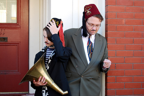 well... you do have on fake mustaches and silly hats... but i think adorkable is a more suitable description.
