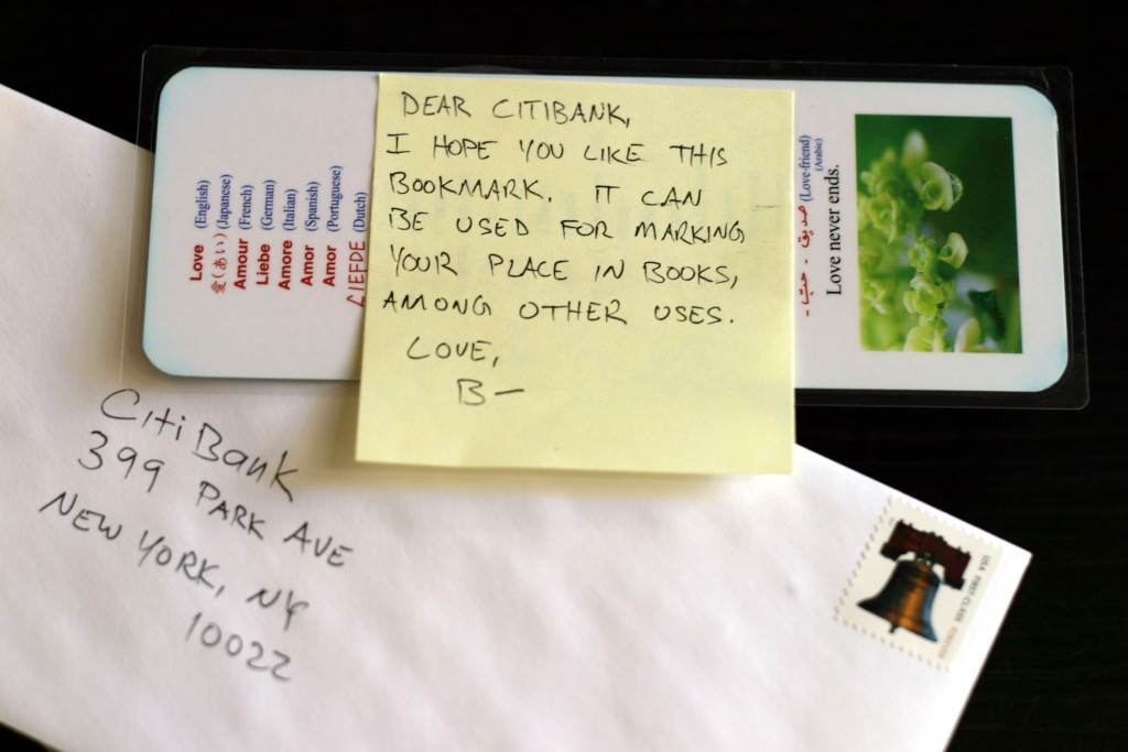 Love the bookmark guy! Did you send a bookmark to CitiGroup too?