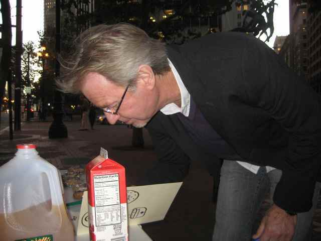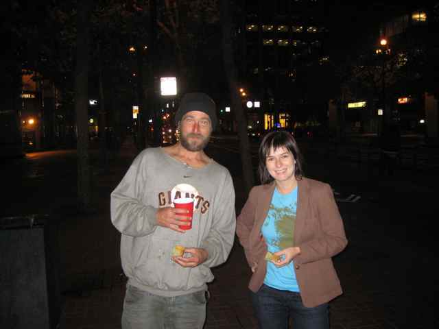 And so, on Wednesday, October 8th, Loki, Lowteck, Ian and I convened at Market and Bush in SF at 5:30 (okay, maybe we were a tad late) in order to catch the banking crowd on their way home from work. Who better to ask for donations to CitiGroup?