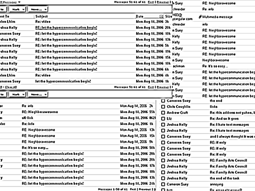 This represents more than four times my normal use of electronic communication. And it was a fairly overwhelming part of this task. The result of these last three days was time absolutely wasted. After a certain quantity was passed, communication brought down to the level of constant small talk, chitter chatter, where ultimately nothing was being communicated at all. The more I communicated, the less that was communicated.