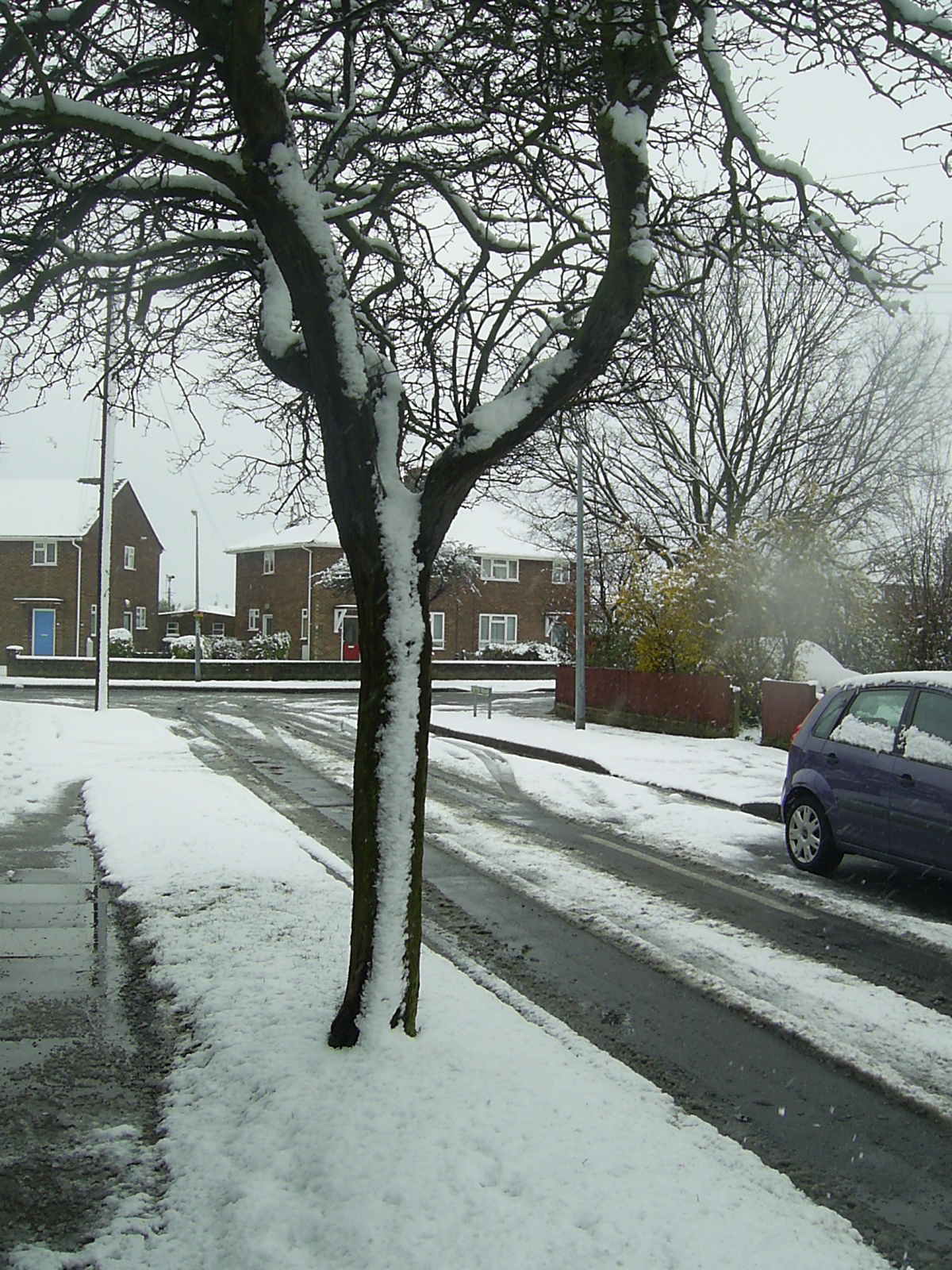After Magdalen Square, I wandered down Magdalen Way and past the shops. It's quite weird how quiet it is down there, there's normally half a dozen old people doing their shopping, a few teenage mums and a handful of chavs, but alas, I was one of the very few mad ones who decided to brave the cold. I then decided, since my mum said not to be too long, to head back home down Worcester Way. I thought it was quite ironic, there's a palm tree down there, covered in snow.