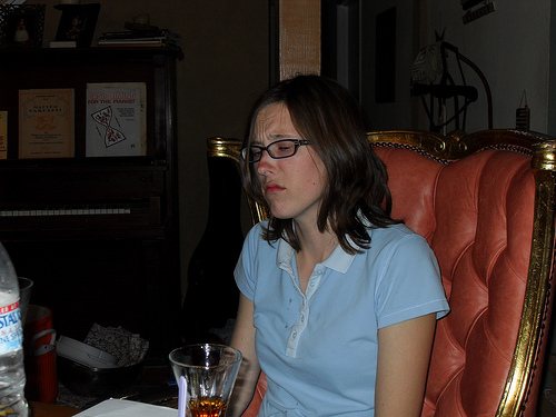 "Amaretto is my favorite alcohol. The sweet, almond liqueur fills my mouth, tasting slightly of syrup with a sharp, tangy feeling in my throat. The sweetness lingers on my lips, and I lick them for a little extra treat. Its warmth flows down my throat to my stomach where I feel my heart warm with its magic juices. Delicious!"