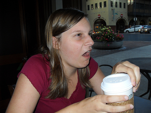 "As the hot, sultry liquid slides onto my tongue, I note the dark, rich flavors of coffee and chocolate. It tastes like the color brown, like the warmth of settling into a well-worn chair. The flavor lingers for a few seconds on the back of my palate and I taste a few sharper, more bitter notes. Mostly, the coffee is dark, warm, comforting. Wonderful! Rating: 8 stars"