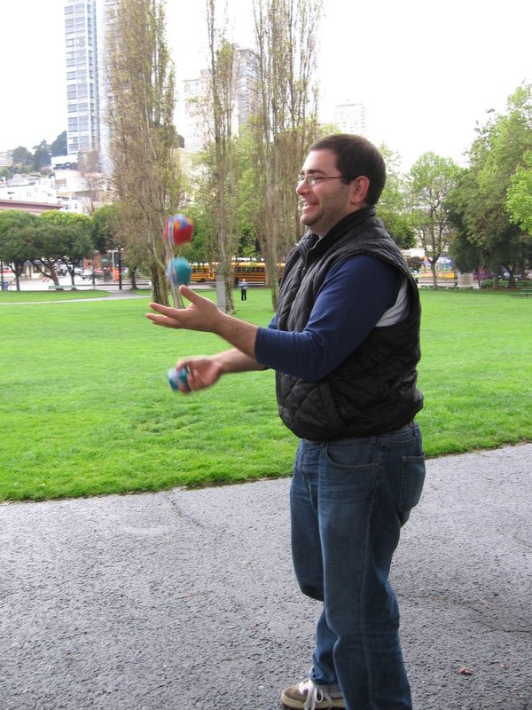 “Wild Parrots around here? Huh? Is this an elaborate joke on me?� he said. Apparently our friend had never heard of these parrots. Thus, we began wandering Washington Square aimlessly. I juggled, hoping to pull off a little Skilltoy Supremacy, but was unable to draw a crowd. Although we were quite merry, we were no closer to completing any SF0 tasks. But instead of doing anything about it, we continued to wander the streets. Then, an epiphany! We returned to Cafe Delucchi to inquire about any nearby flower shops.