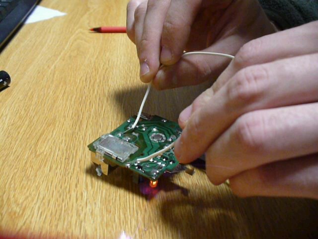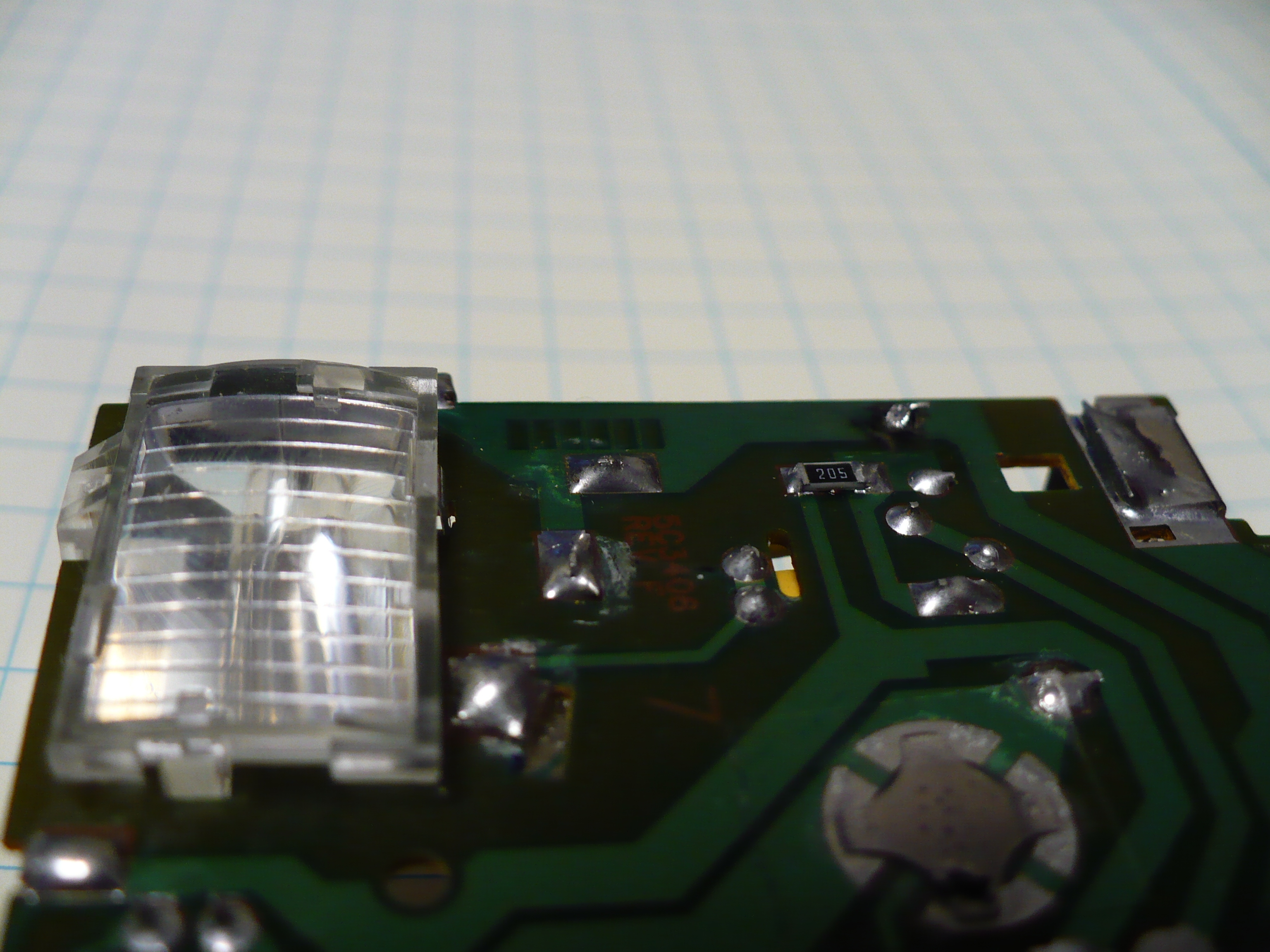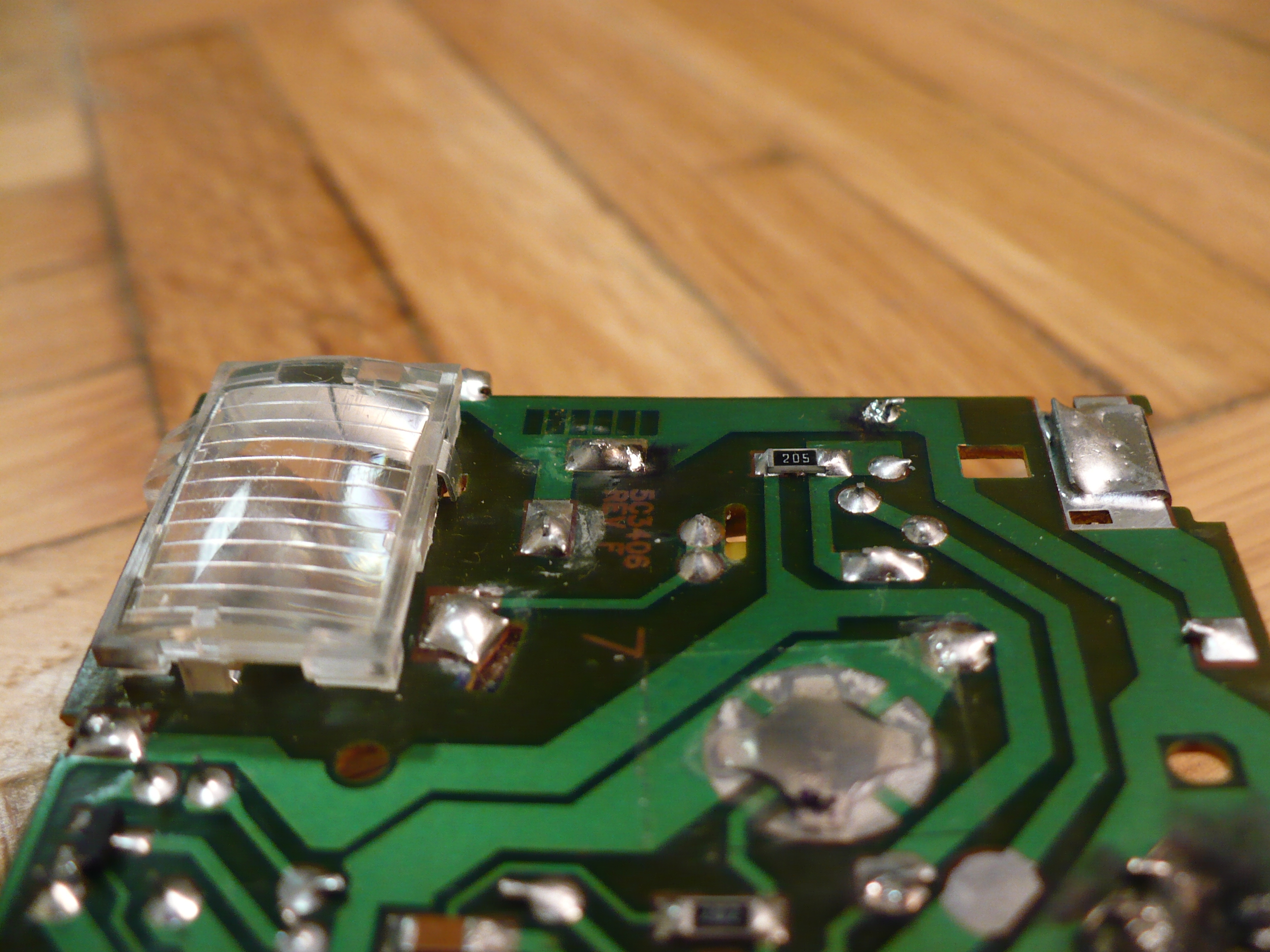 The solder joint furthest from the camera just to the right of the flash will be one target.
