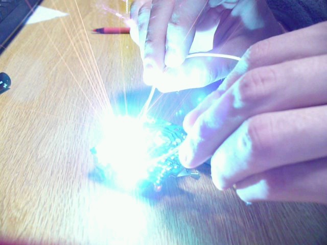 SPARK! I find it particularly impressive how much lens flare there is, and how bright the reflections off my hands are.