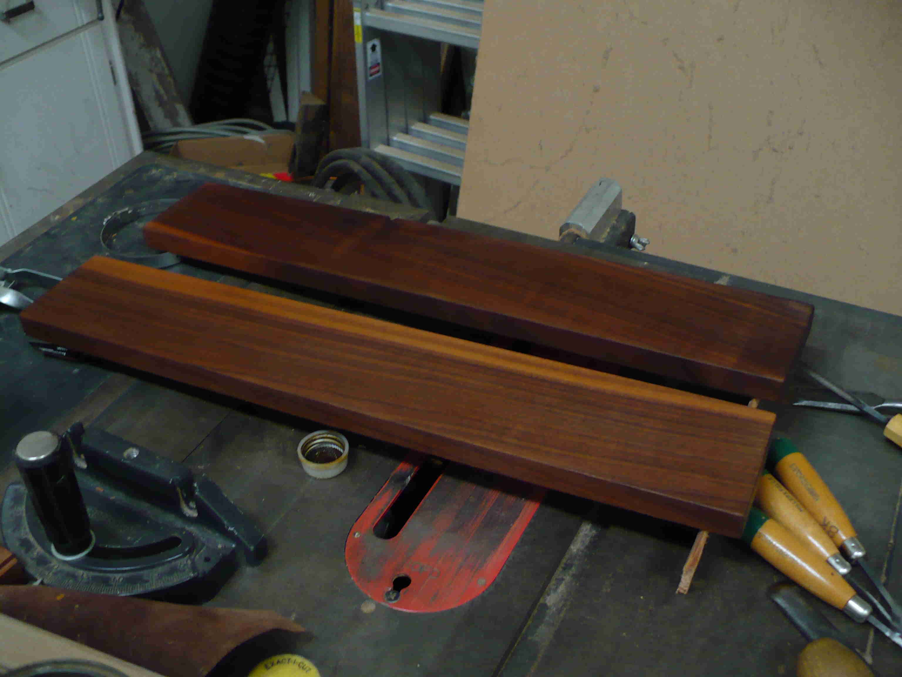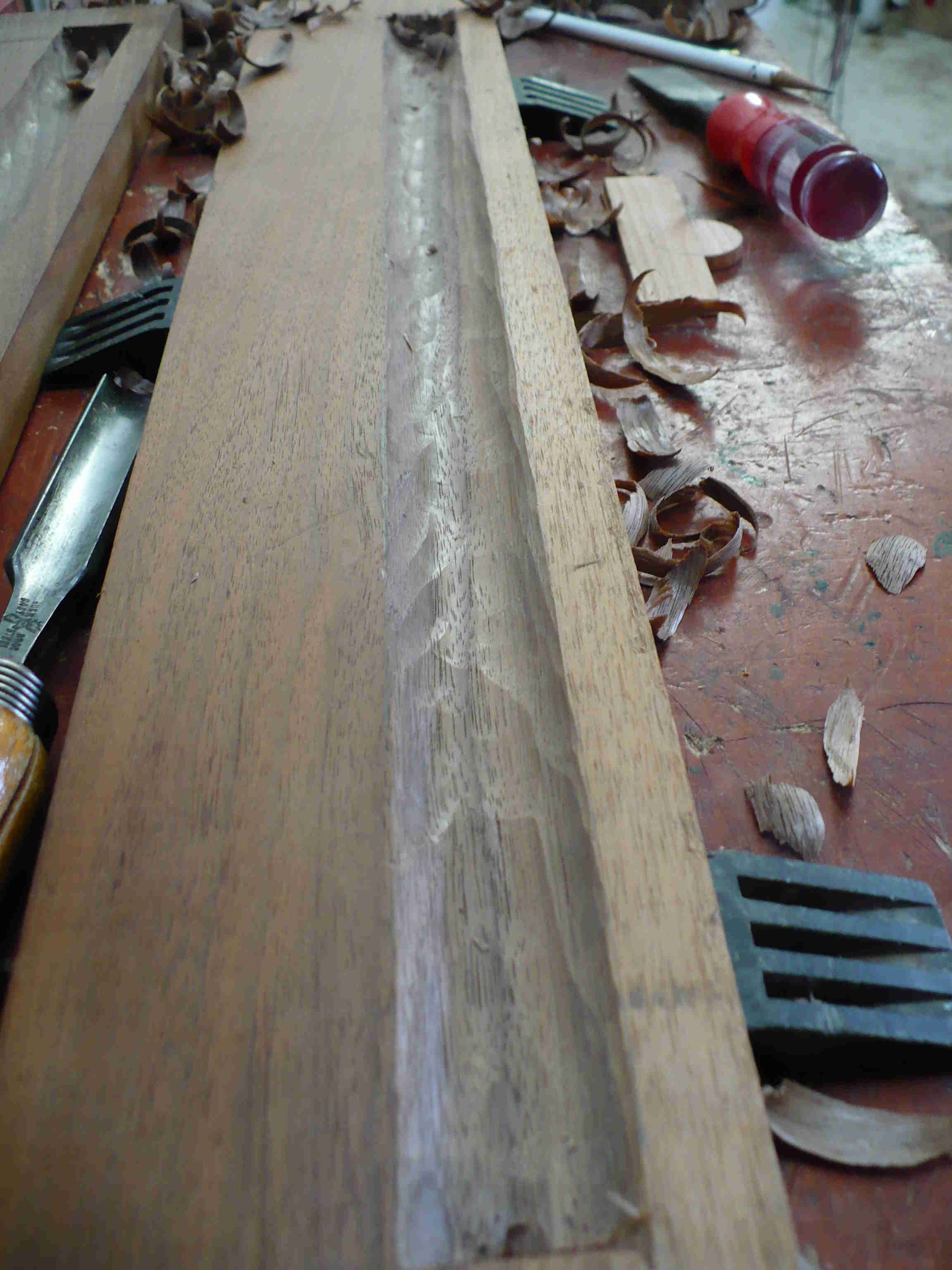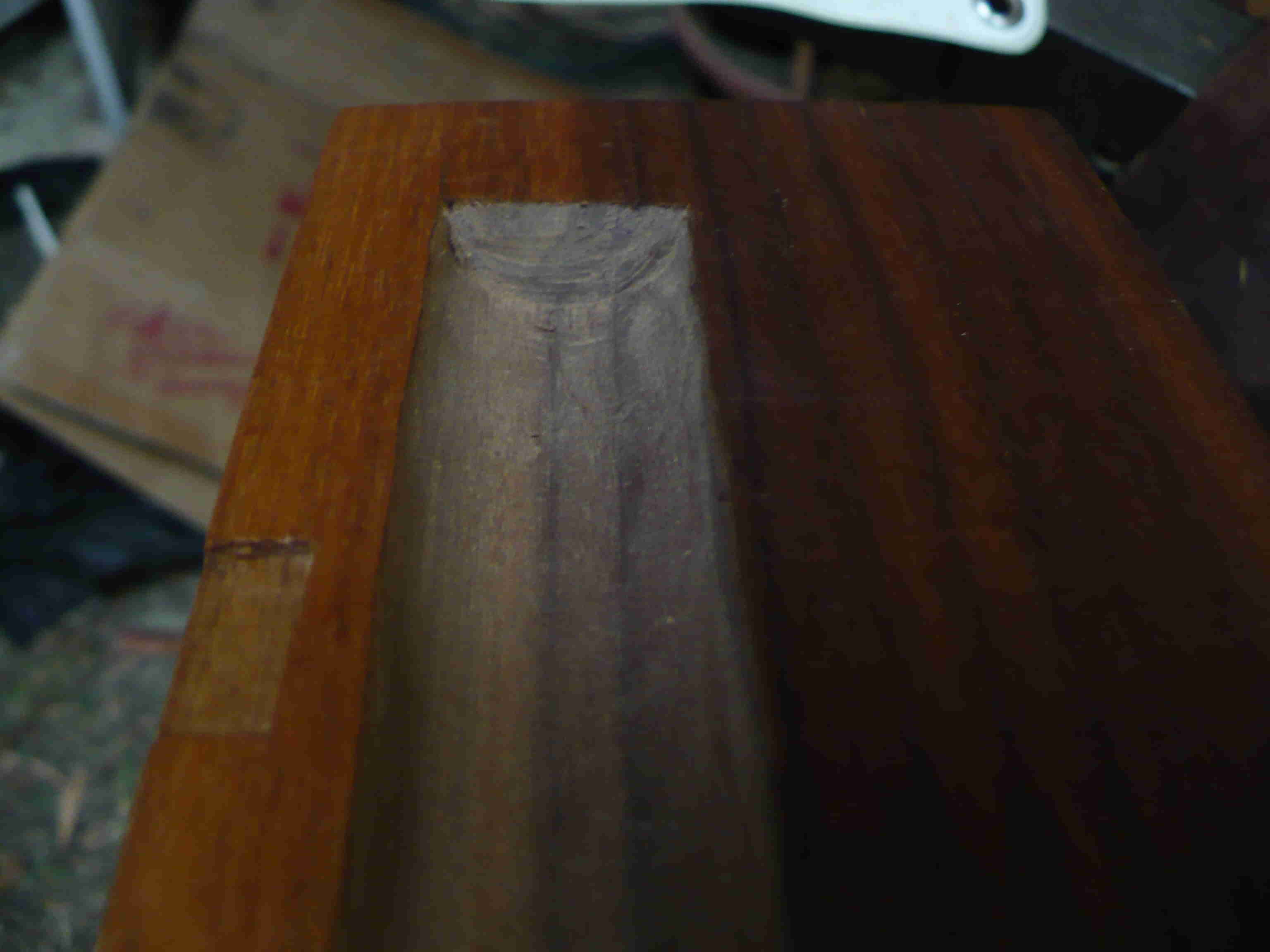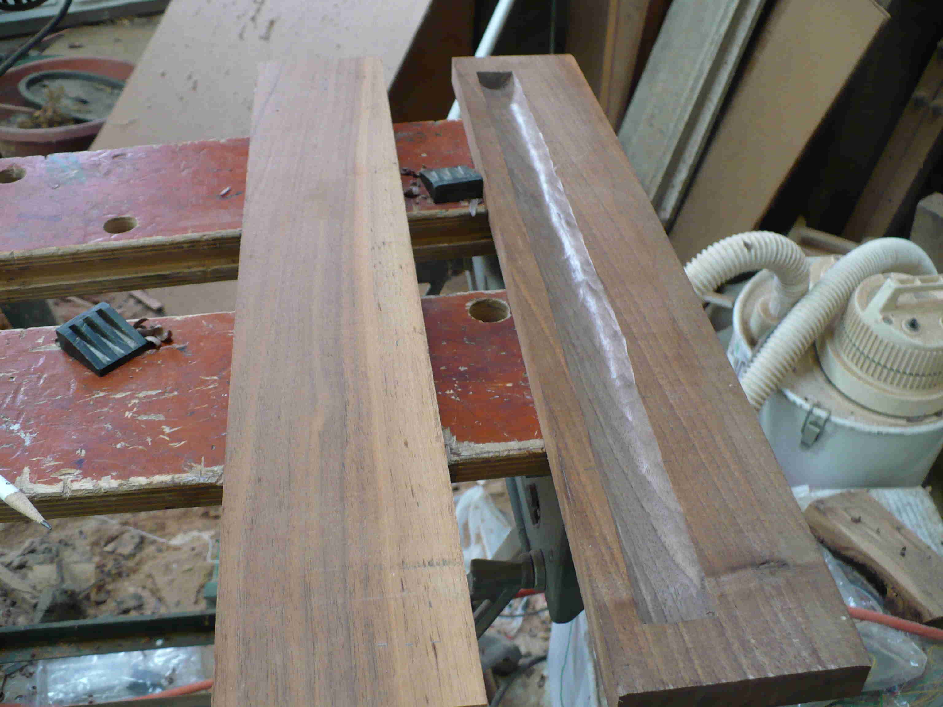 Comparison between the oiled surface and the unfinished cavity. I didn't oil the part I was going to line because my dad pointed out that wood glue doesn't bind as well to an oiled surface.