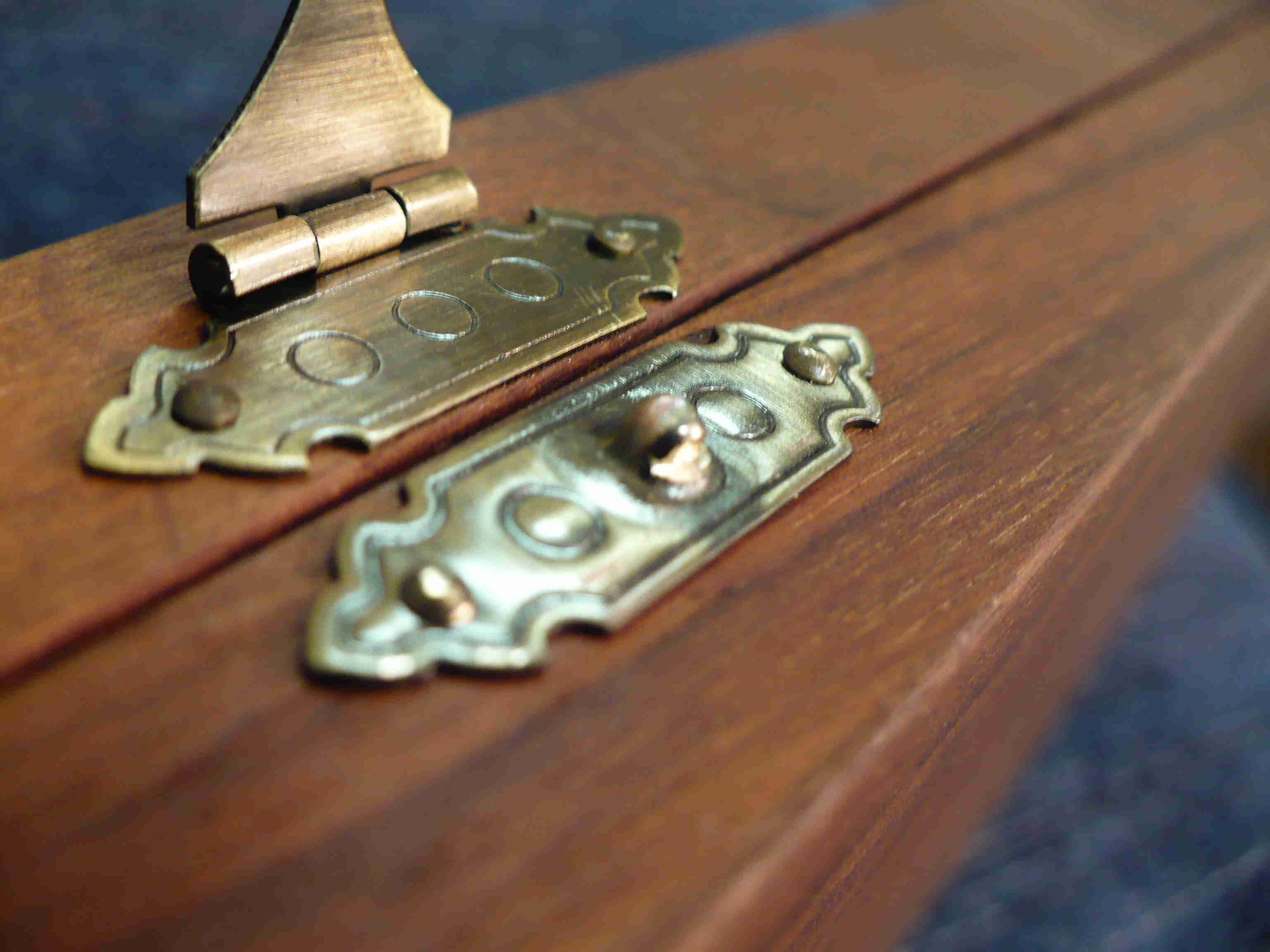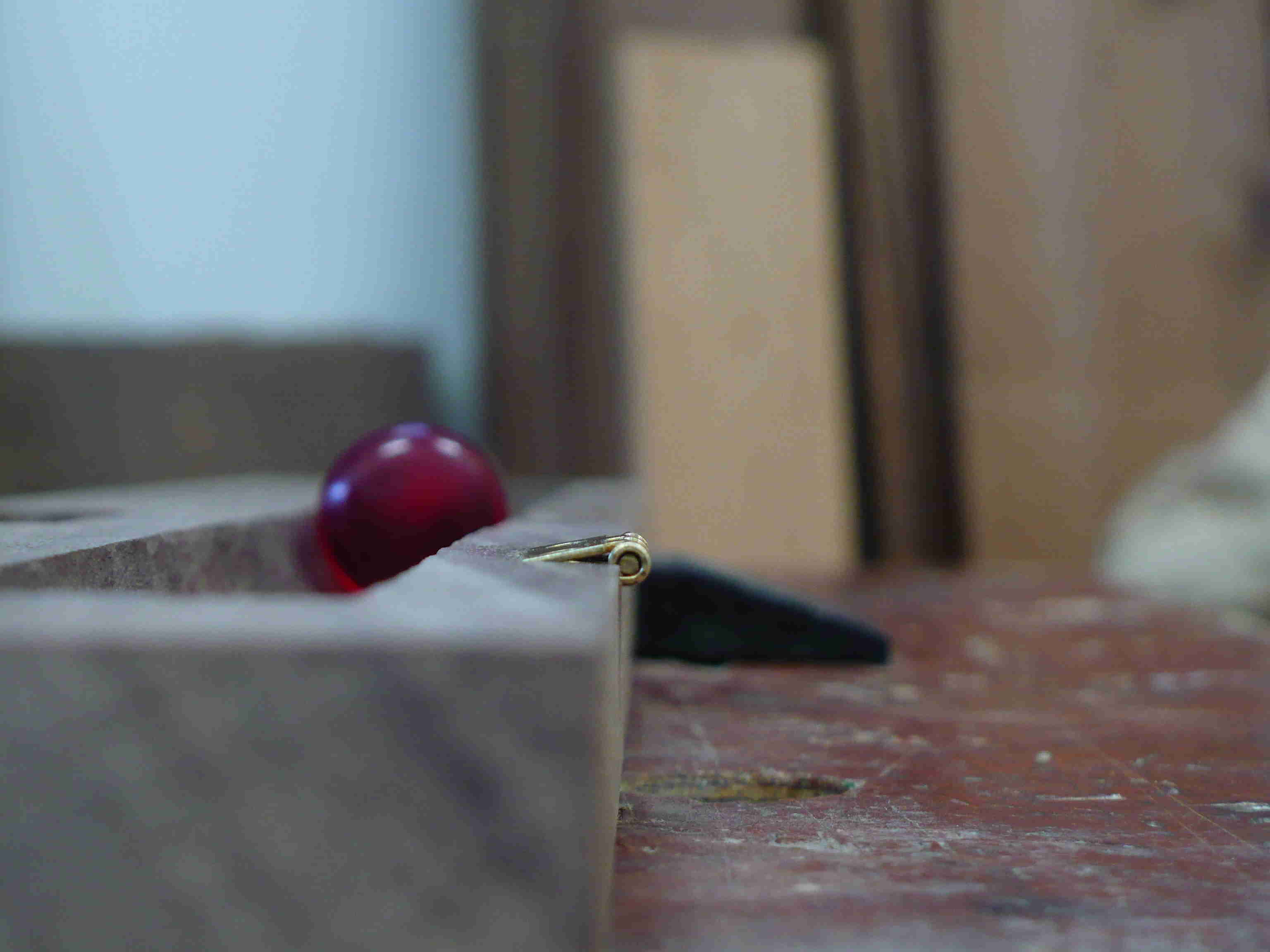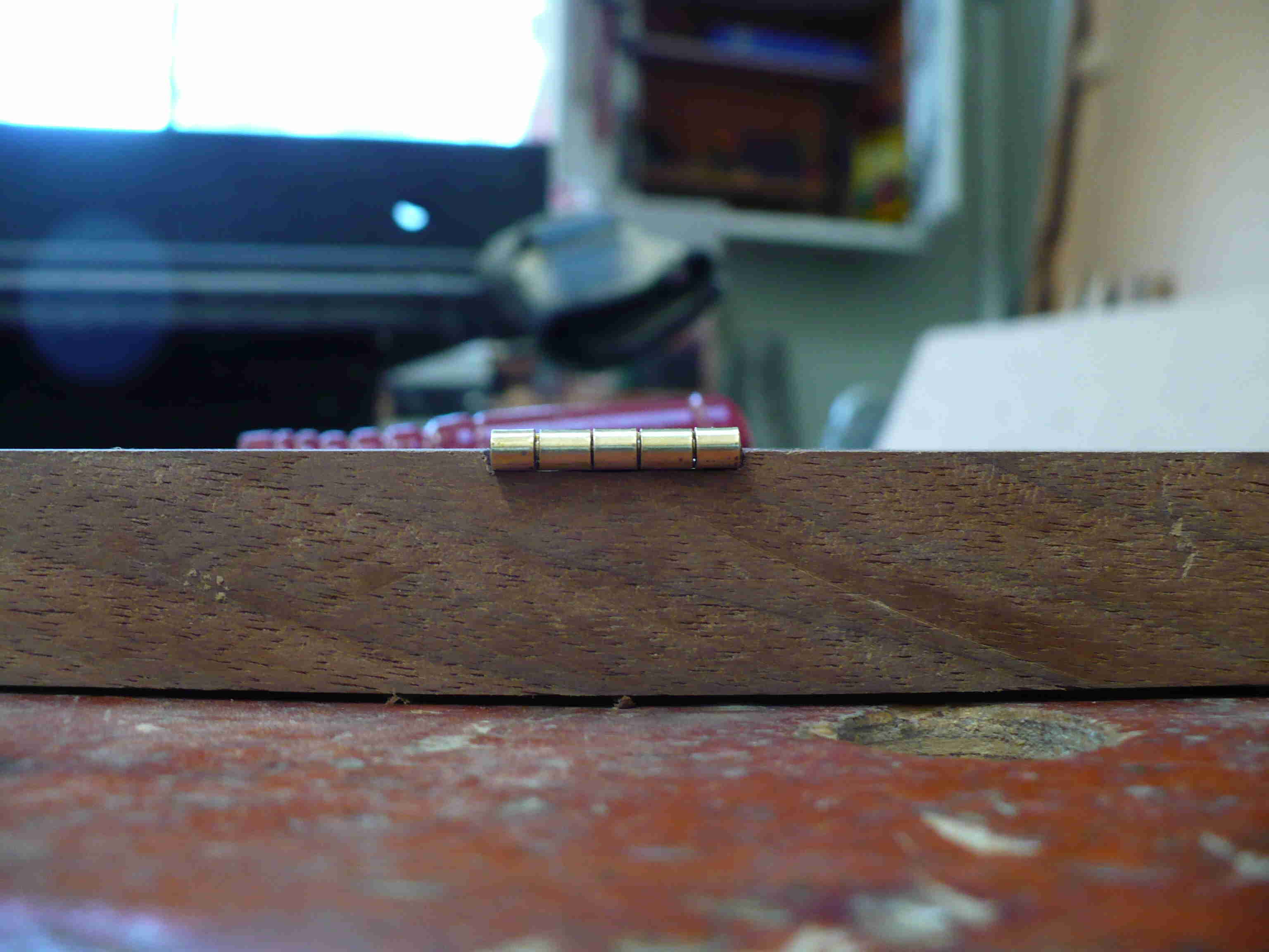 Little tiny nails to be driven in to hold the clasps. I got them pretty much in the right place, but unfortunately each would end up being off very slightly (a millimeter?) in a random direction.