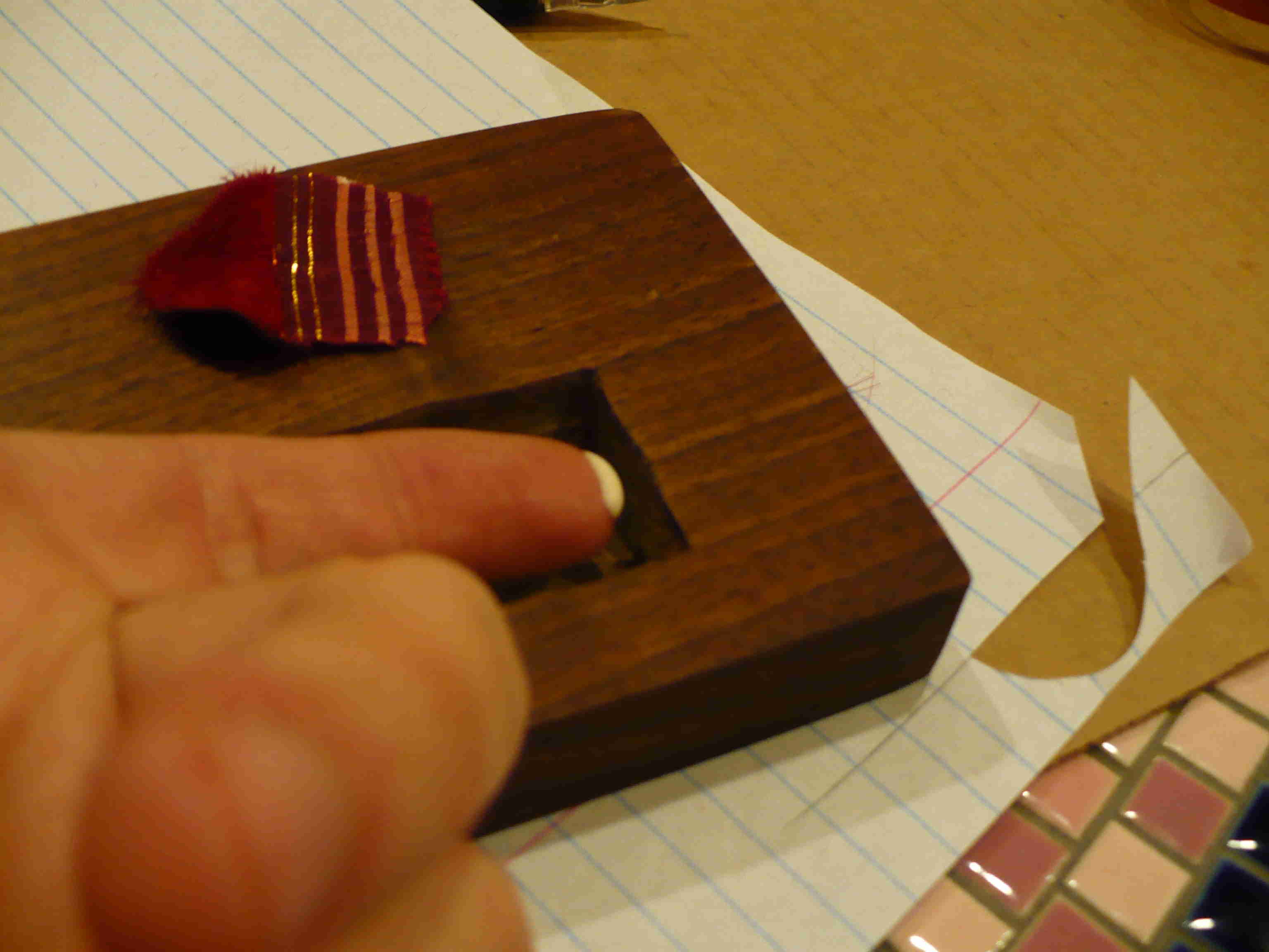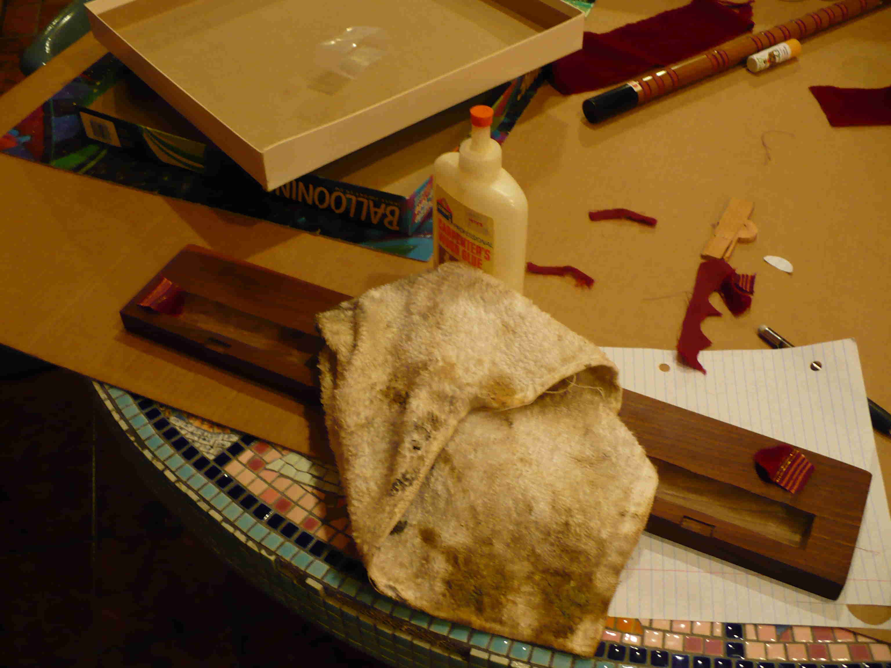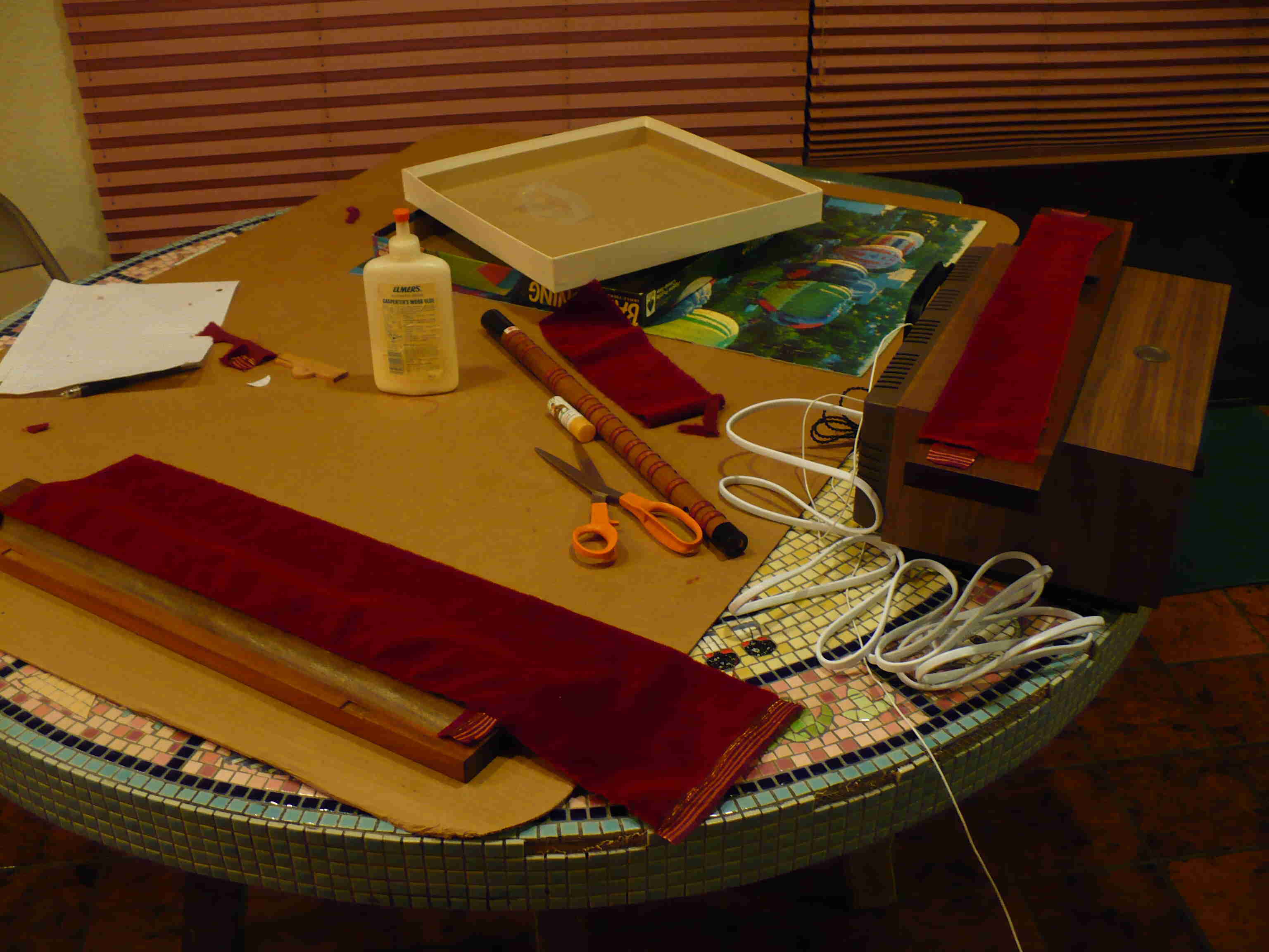 Getting ready to glue in the velvet. I just now noticed that this shot also represents three generations. I made the case, my father put together the puzzle, and his father made the table. (My dad totally got the shaft in his representation, he could out-crafty me any day of the week.)