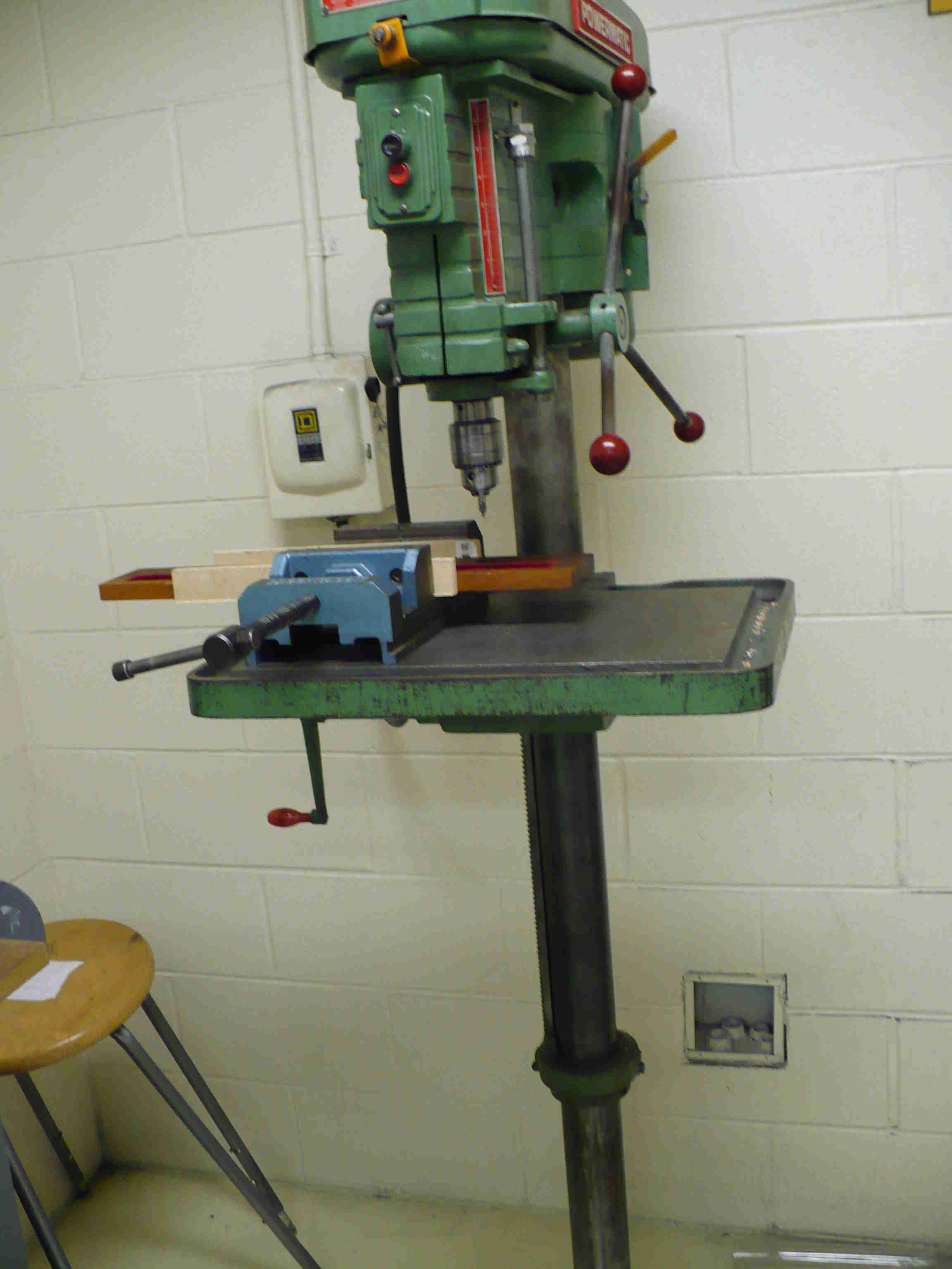 At school I realized that I couldn't actually drive the screws in without predrilling holes first. The drill press may have been slight overkill, but I didn't have a hand drill motor.