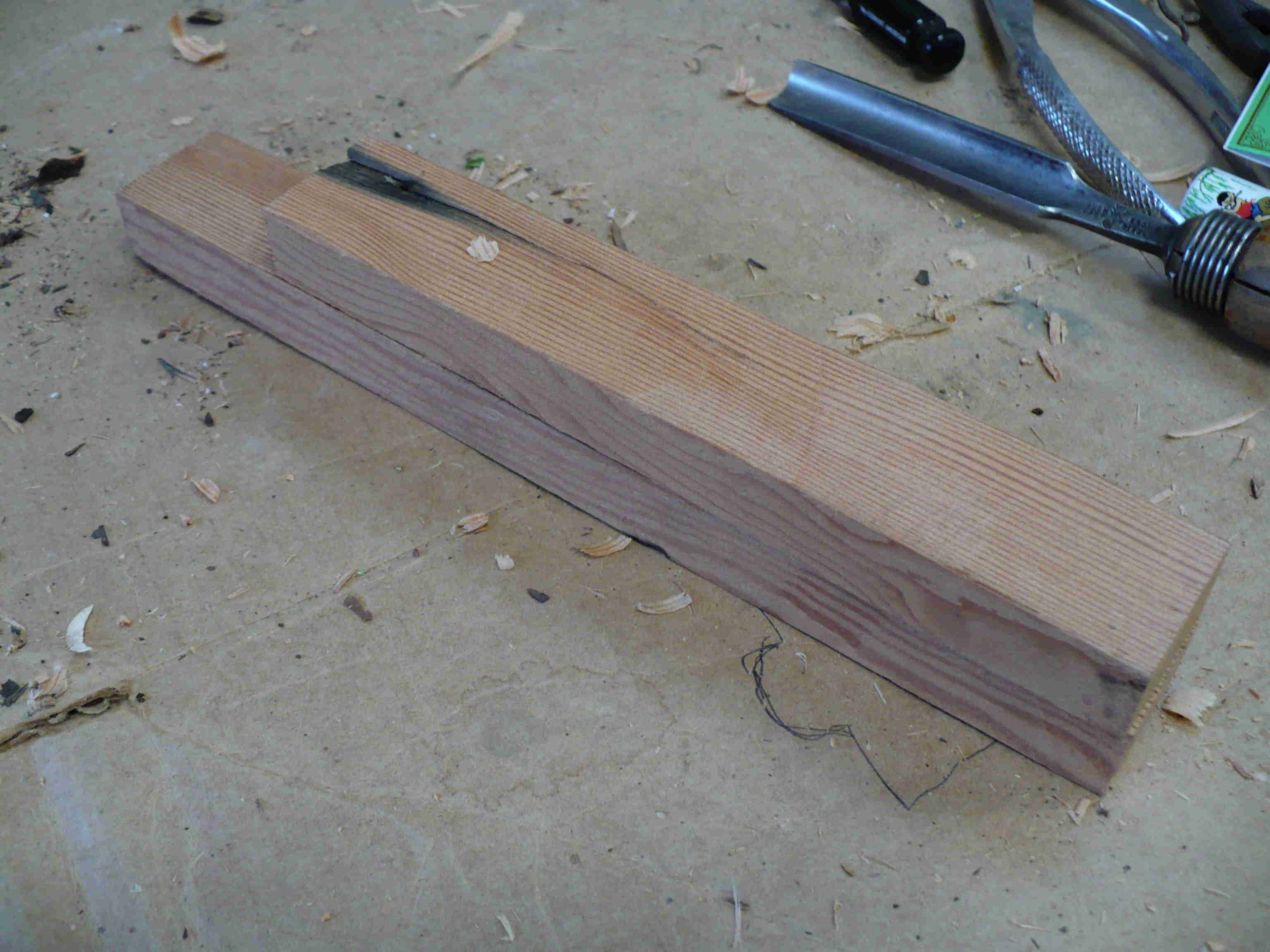 The first cuts. You use a chisel with a rounded edge to cut down about 1/8" from the desired end, then cut either away from it or towards it, depending on the orientation of the grain.