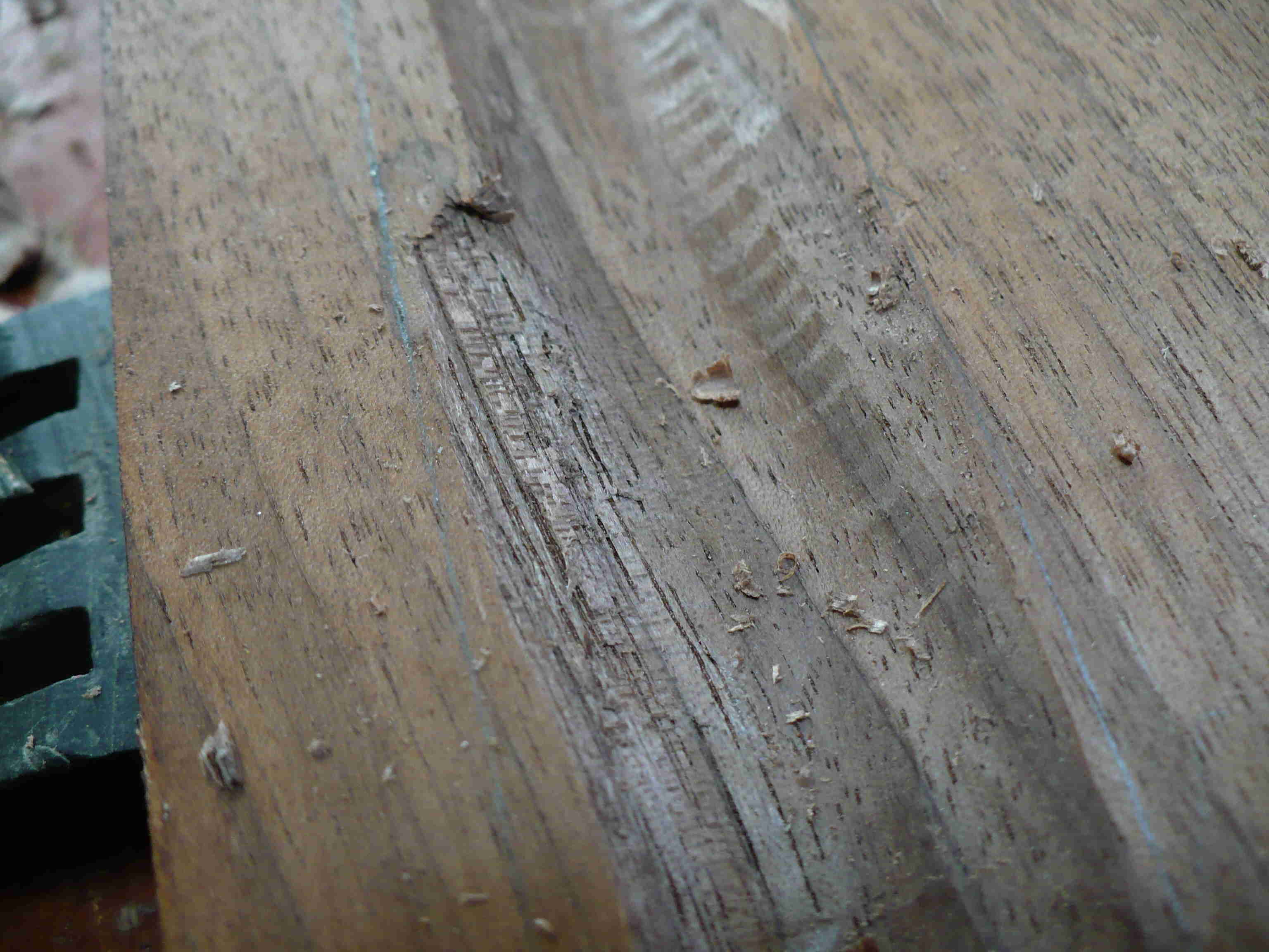 ...this is what happens if you are cutting such that the grain locally angles deeper into the piece you're cutting. It splits instead of cutting.