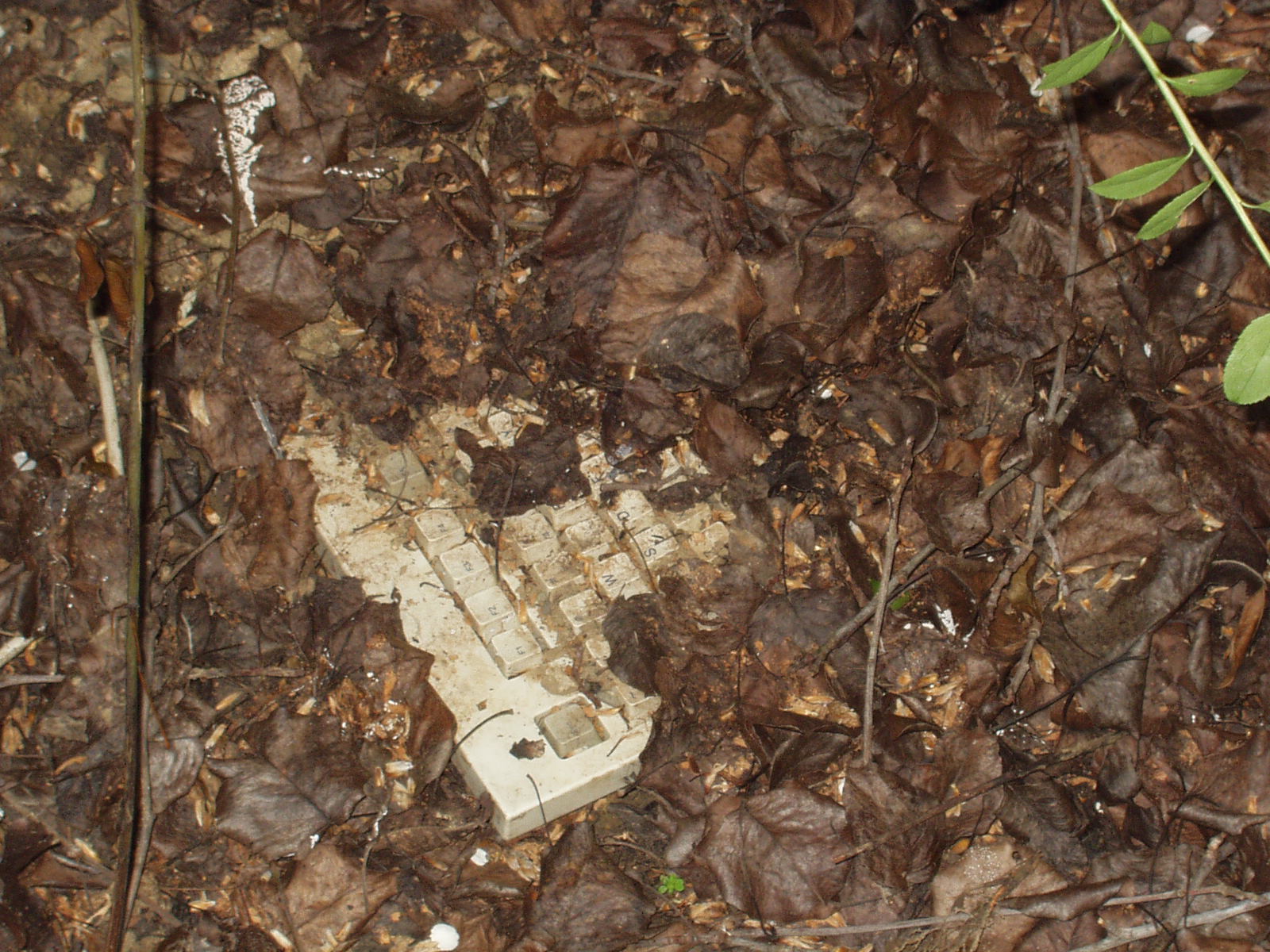 I placed the PC case in the hole, and arranged the pieces in the most artful way possible, running wires into the dirt, making sure the interesting looking parts were projecting up out of the ground. I covered most of the casing with earth. I also buried the mouse and keyboard, with wires connecting them to the main casing.