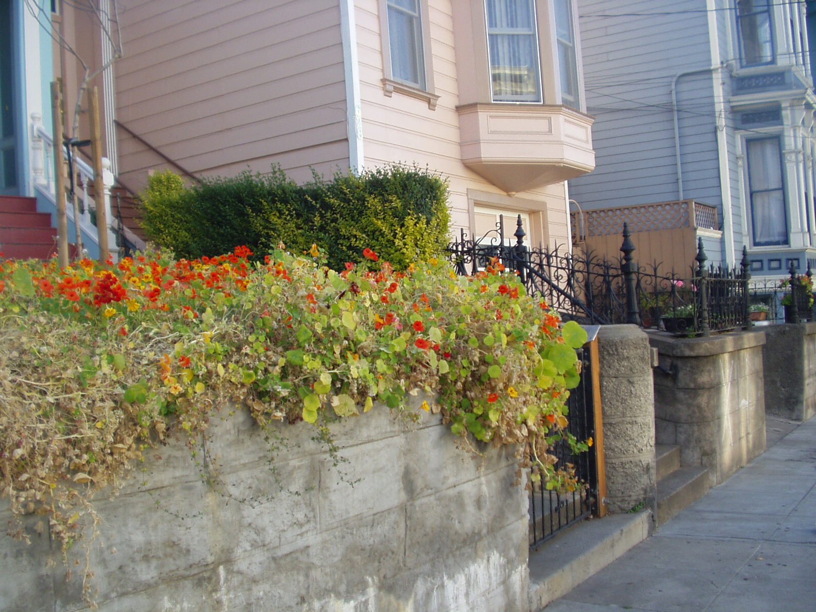 On the way home there is a patch of Nasturtiums (Tropaeolaceae Majus) growing in somebodies front yard. Shotwell and 20th to be precise. They must be perfect for the SF environment becuase you can find them all over town.