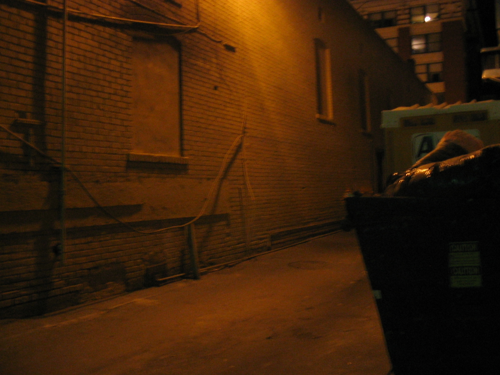 I kept hearing doors open and two guys talking. I tried to take photos of it, but I think they were on the other side of the dumpster and toilet.