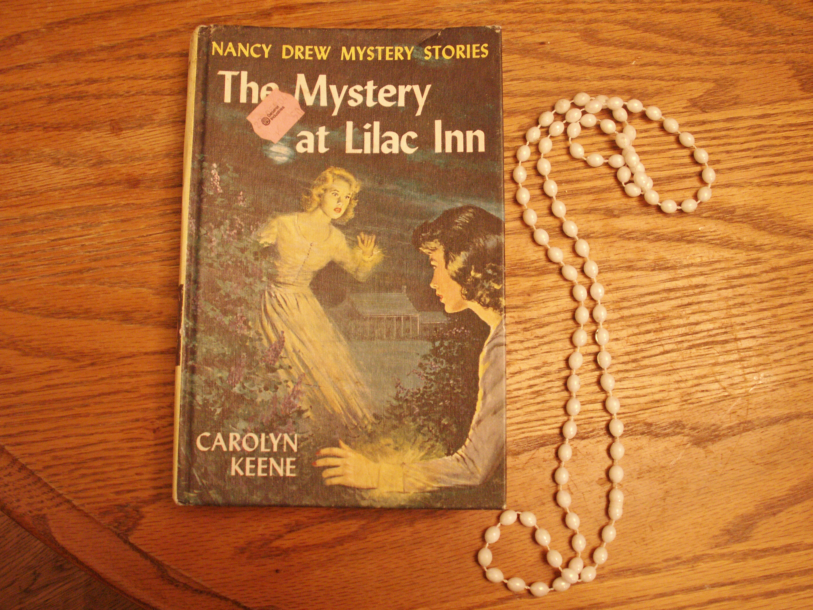 Today my friend Henry and I explored around an old neighborhood. behind each set of houses are alleys that run for miles and miles. The alley-ways are a great place to go treasure hunting because so many people dump garbage and stuff back there for others to find, or throw away. This time Henry and I chose to search behind an old shut down castle-like church that is now used as housing. I had searched behind the church before not to find too much of interest, but today was gold. The day was a gorgeous 70+ degrees and we had just spent an hour in our favorite park. Things were looking good. The first thing we found in the alley- a little storage shed for a 1950s motorcycle, but the bike was ot of it and the shed was open, revealing old 1950s pinups amongst other nostalgic items. As we continued walking down the alley we stumbeled across an old tv, a stuffed teddy bear, a sneaker/boot, an old orange and green velvet armchair and then discovered separate treasures of our own. Henry picked up a video tape that said "alex" on it. I nudged around in the dirt and found an old Nancy Drew mystery book and a white necklace (pictured below). What a great day for treasure finding! I will update this entry as soon as possible to let you know what was on the videotape!