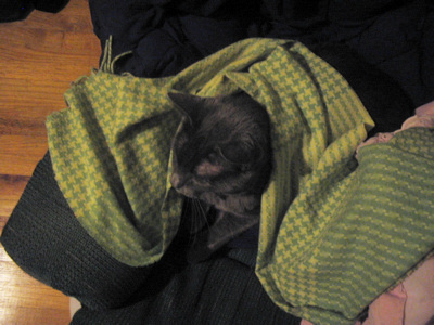 For this task I used one of my favorite winter accessories, and my subject was one of my cats. Since it's winter, I decided to kill two birds with one stone and make my cat green but warm at the same time.