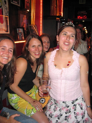 The bride was flattered and I got a chance to talk to the rest of the bachelorettes -- and I even got one of the stickers they were using to keep track of how many drinks the bride had had. (By the end of the evening, the bride looked like NASCAR driver.)