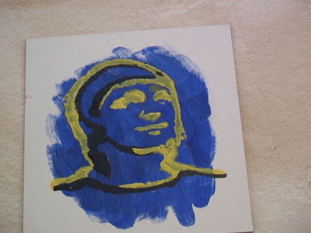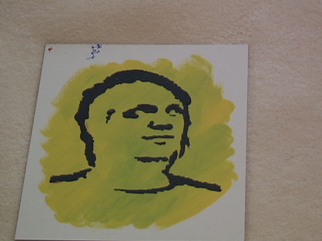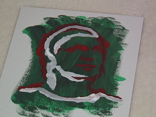 Then I took my exacto and created a cutout of the form I wanted. Then I took paint and painted through it. Here's the final results. You'll see my practice one - the first one - worked the best.