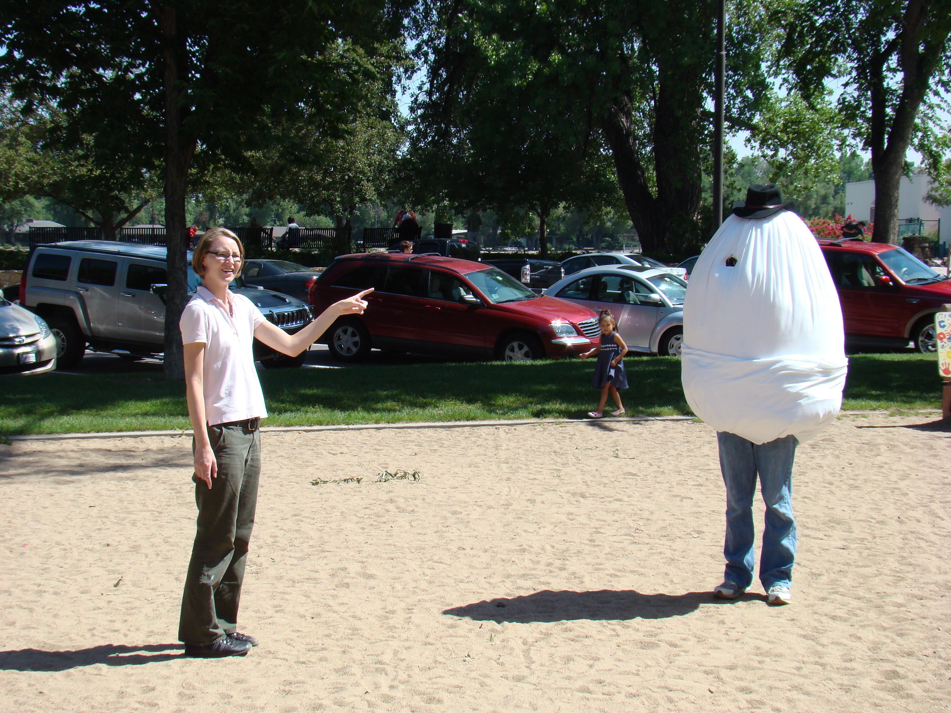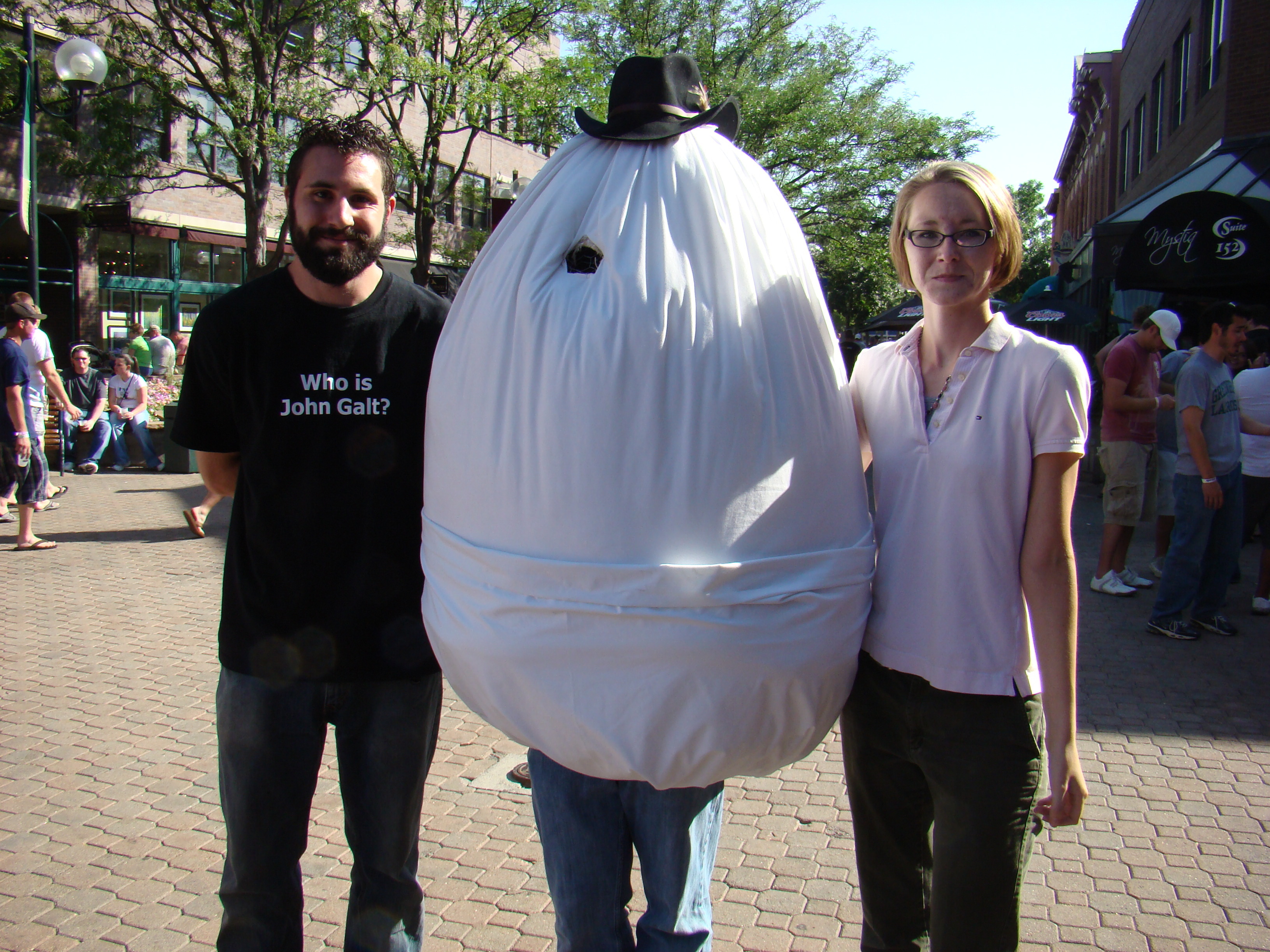 Finally, we decided to go find a crowd. The annual Brewers' Festival (or "Brewfest"), where all of the bars in downtown Fort Collins open up and offer special deals offered the perfect opportunity. We received several strange looks from the locals as we trekked through the large crowd, though many found it amusing that a giant egg was in their midst. After several minutes of walking through crowds and dancing to local music, it was time to head back home.