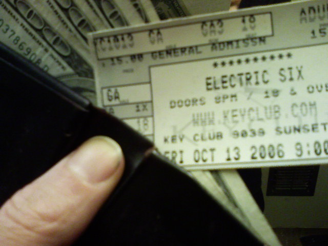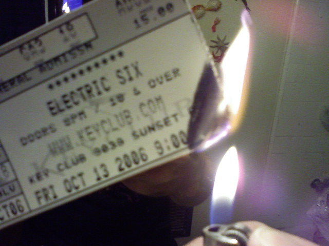 I found a ticket for an Electric Six show I've had stashed in my wallet since last year. I think that this band, above any other, would appreciate fire treatment.