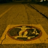 This is on the ground right out side The Boardwalk in Santa Cruz. (you might remember it from Lost Boys) there are also three other NO painted there that make total since. this one is a little convoluted Apparently they don't want you skateboarding ...