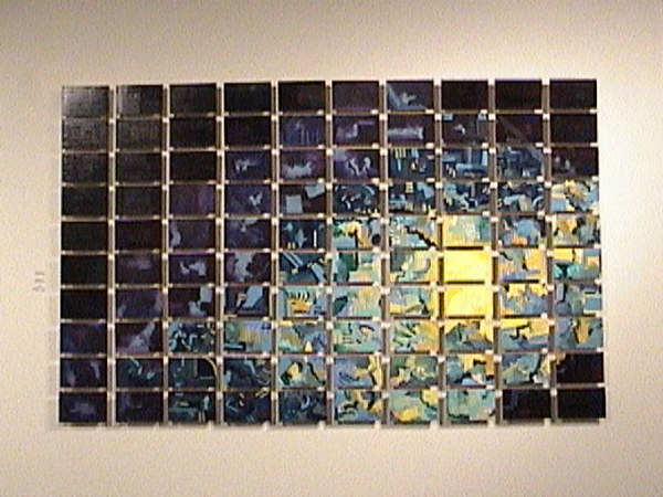 Well, I did this before I signed up to SF0, but I figured I'd submit it anyway. It was heavily, and loosely, based on the Fibonacci sequence. It is made up of 100 panels, each panel is 13 x 21 cm, (both fibo numbers). The brush strokes were applied changing direction for each fibo number, ie: 1 one way, 1 another way, 2 aonther way, 3 etc...the darker panels were made using very thin, transparent layers of oil paint. The layers were also applied in a similar fashion. I covered the whole panel in one layer, then the whole panel again, then half the panel, then one third the panel, etc. It was a fun project.