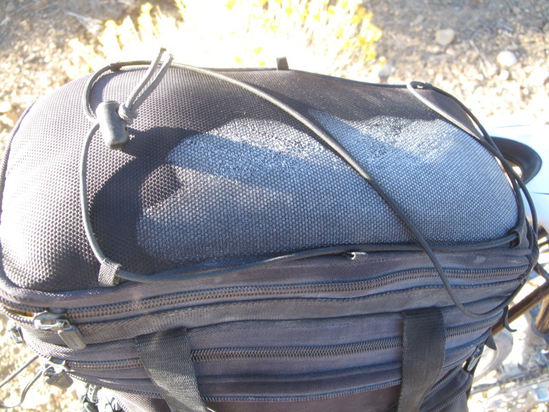 Woke up fairly late, sun already streaming into the tent. I put the fly on last night because it froze the night before, but it didn't last night and I woke up a bit too warm, so I went out to strike camp straight away. And I realize the voices I thought I heard this morning which I thought woke me up, were real and not a dream, they were the first riders from the century ride heading North on the road above me. Interesting. I got myself all stowed away, and the climb up was uneventful except for all of the bikers heading North on the other side of the road.