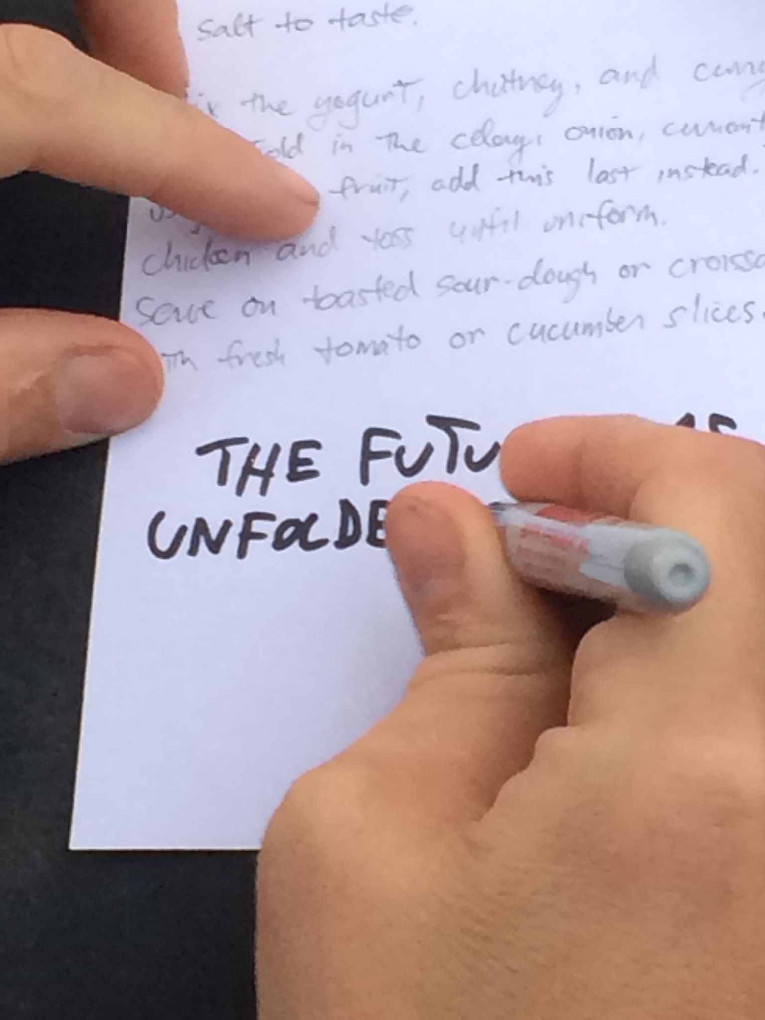 I will hand over a printout of this task completion, along with a detailed recipe for curried chicken salad, upon which the player will solemnly swear that the future has unfolded as specified here.