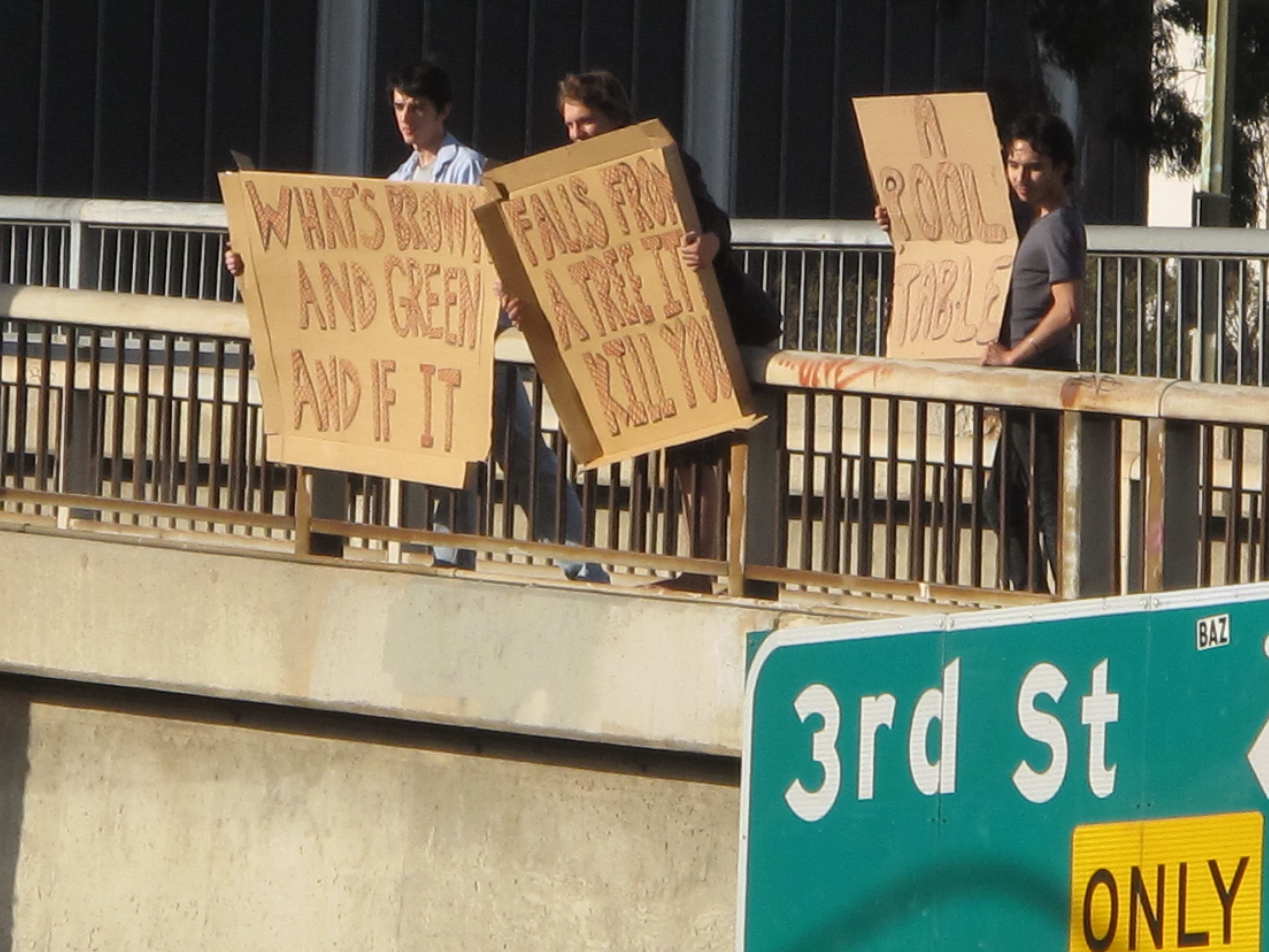 With that knowledge in hand we came back the next day, this time armed with signs. Signs designed to amuse.