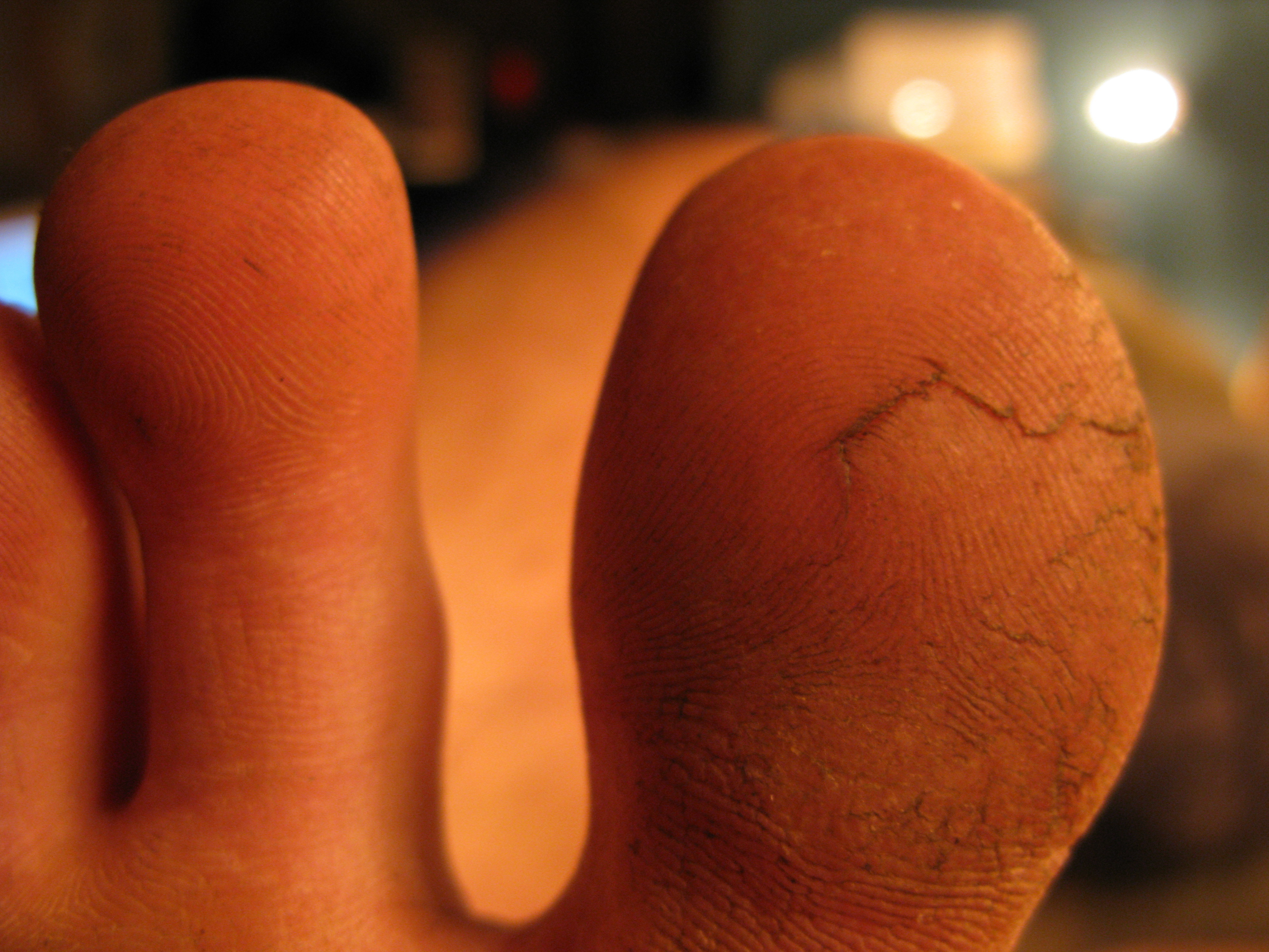 The callus is so thick that I can't feel when these cracks appear. hey look painful, but the only sensation I get from them is when I run my fingers over them. Feels pretty cool. Like bark on a tree.