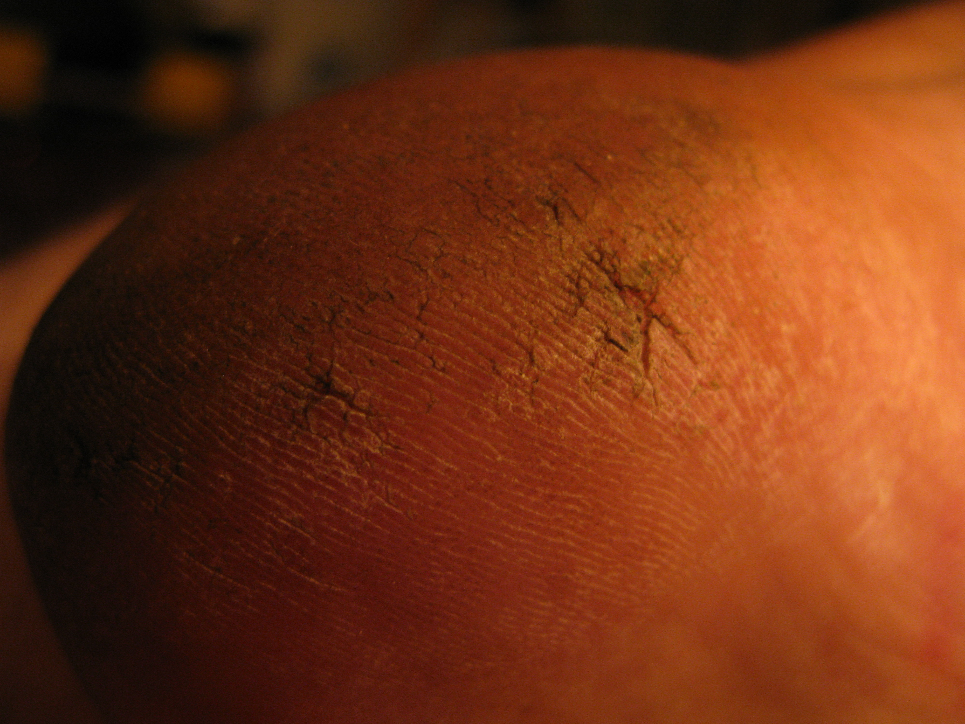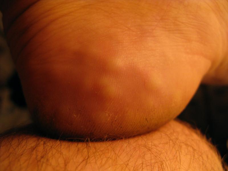Notice the red scar and the cracks and the callus on the side where it hits the ground when I sit indian style, which I do a lot.