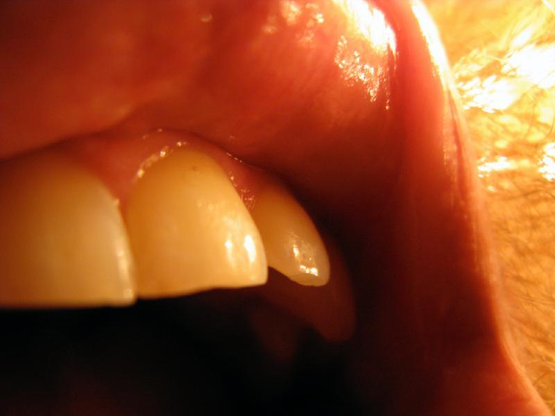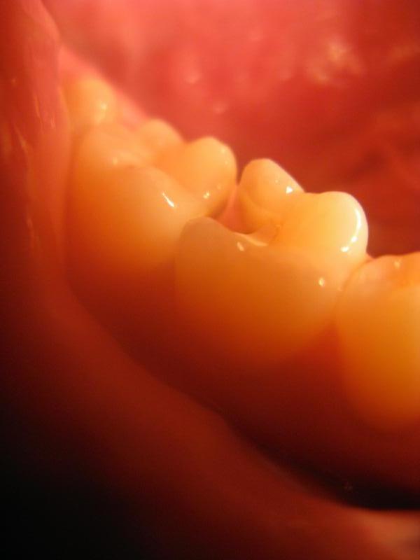 I chipped my tooth years ago, and have had this hole in my tooth ever since. I have to always carry toothpicks with me so I can clean it out after every meal, but I have never seen it. Now I have. There it is. It's kinda isolated. I don't know how it got chipped way back there protected by all the other teeth. But the orks got into Helms Deep, so I guess anything's possible.