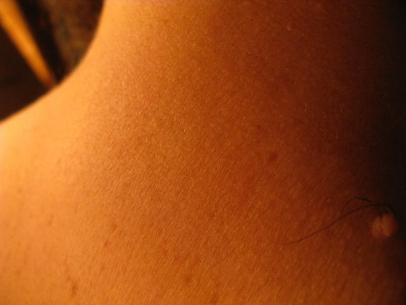 There's another mole on my back by my neck. This one has one of thickest hairs ever growing out of it, like it's going in the Brundle-fly museum someday.