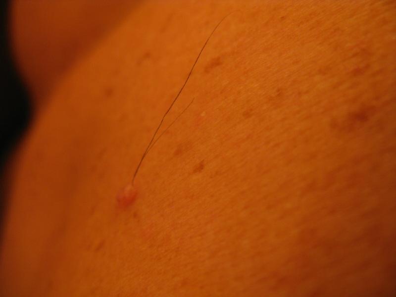 I knew that mole was there, although I had never seen it, but I had no idea it was growing the longest hair in the world like some kind of prize pure bred pet that it might take to some show and win first prize. Some day I'm going to come home and wonder why there's a blue ribbon on my back.