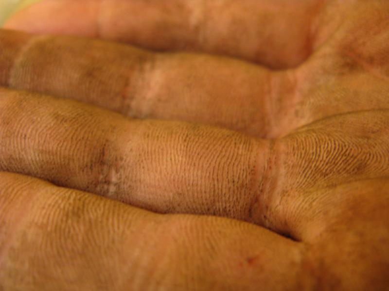This is what my hands look like after coming home from a typical day of work. I like dirt fingerprints.